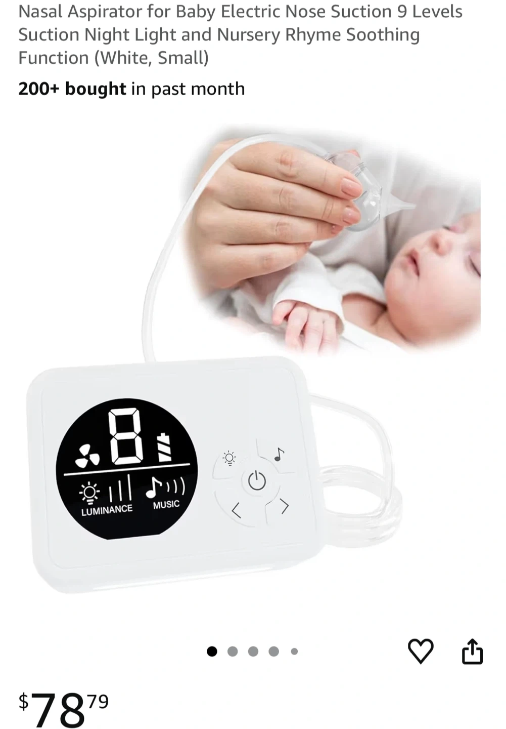 New Nasal Aspirator for Baby Electric Nose Suction 9 Levels Suction Night Light and Nursery Rhyme Soothing Function (White, Small)