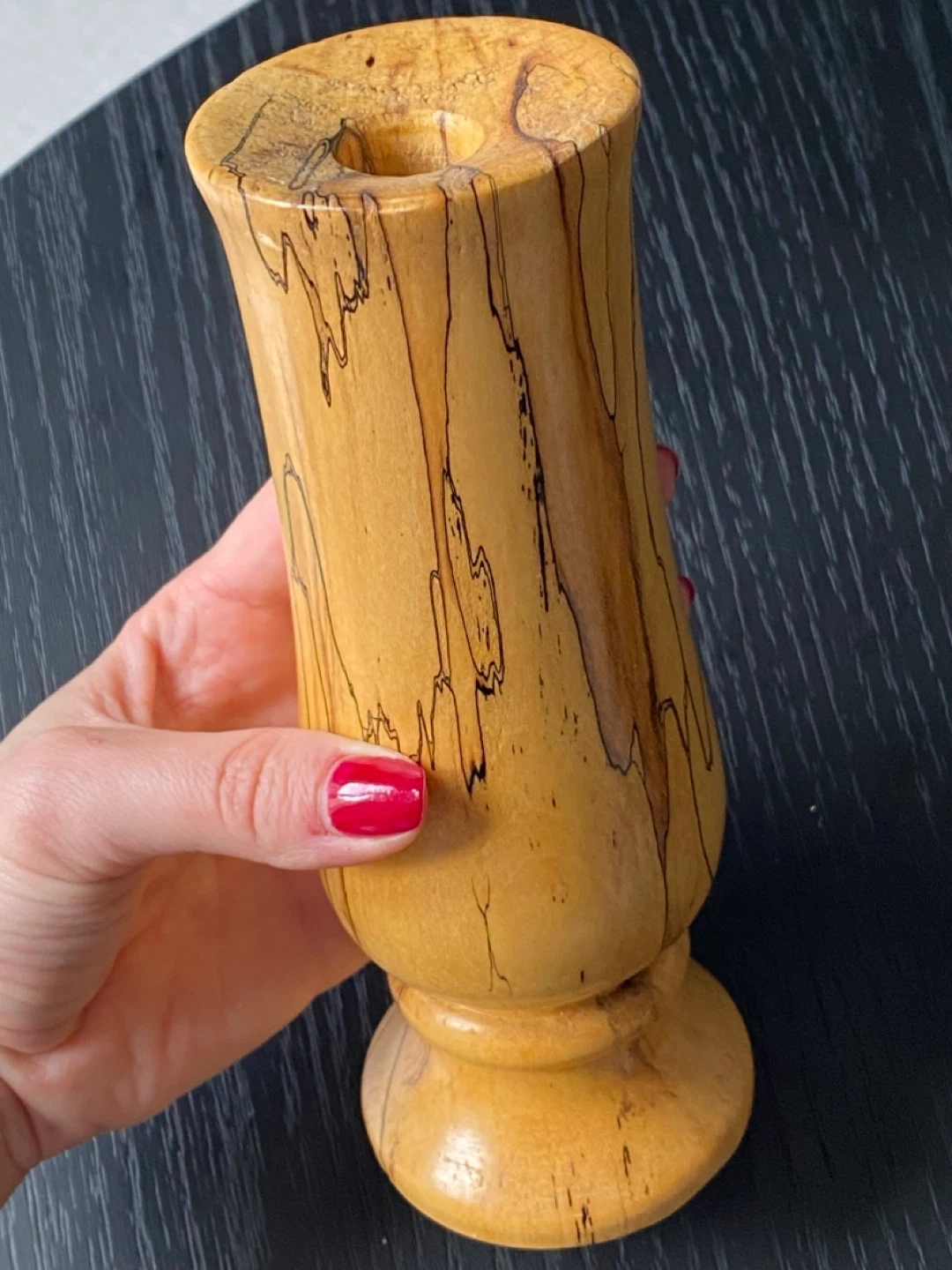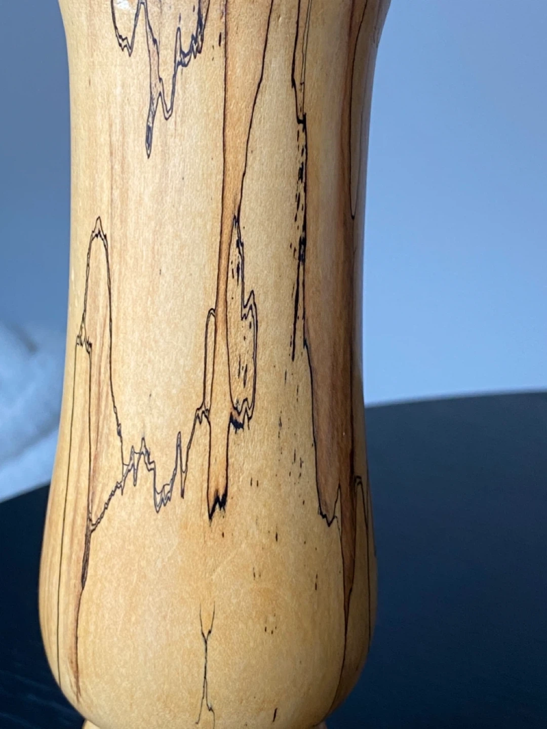 This is a lovely antique wooden vase with a unique spalted wood grain pattern.