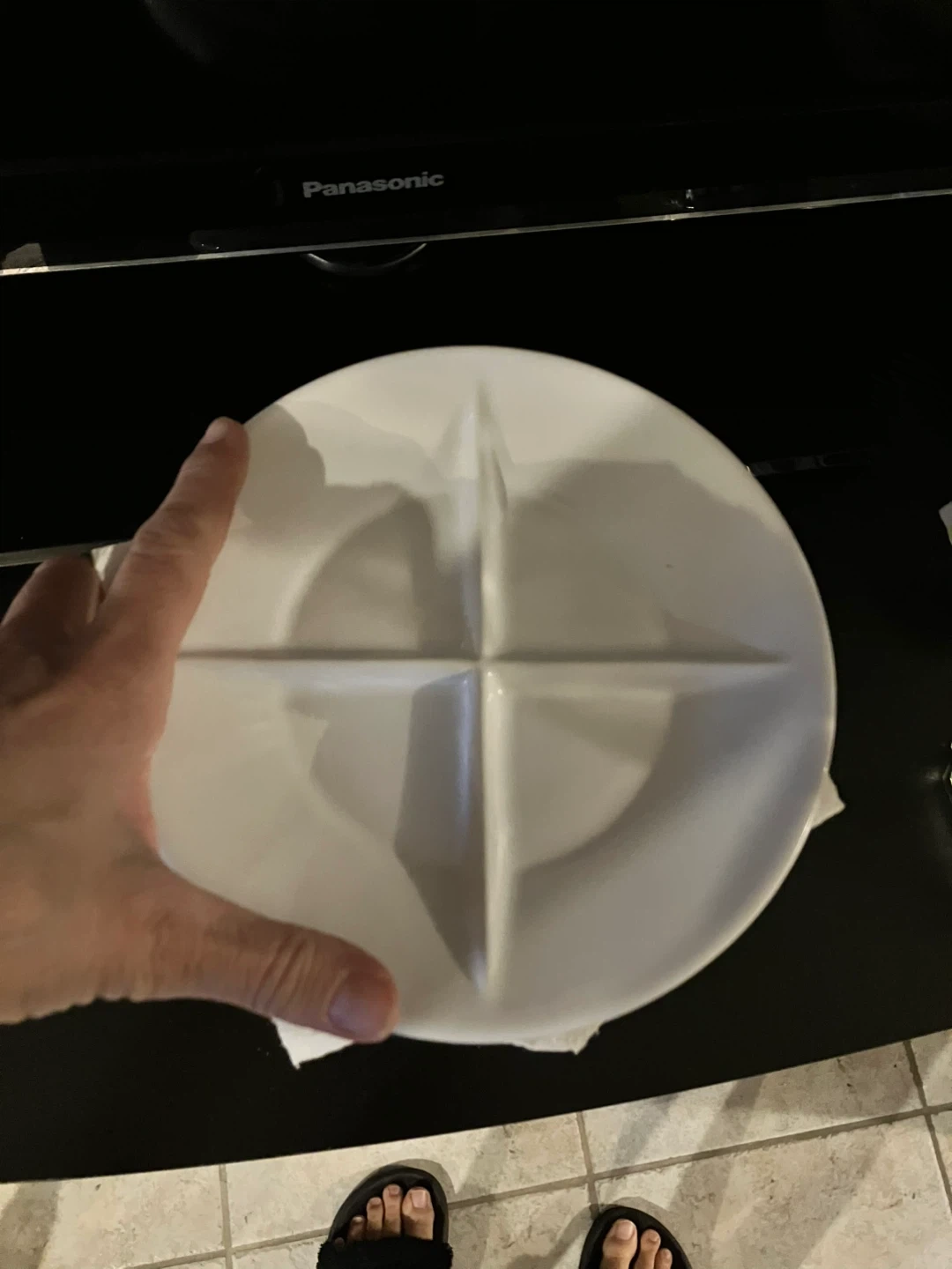 Set of 8 white ceramic divided plates. Each plate has four sections for serving different foods. Dishwasher safe for easy cleanup! Brand new