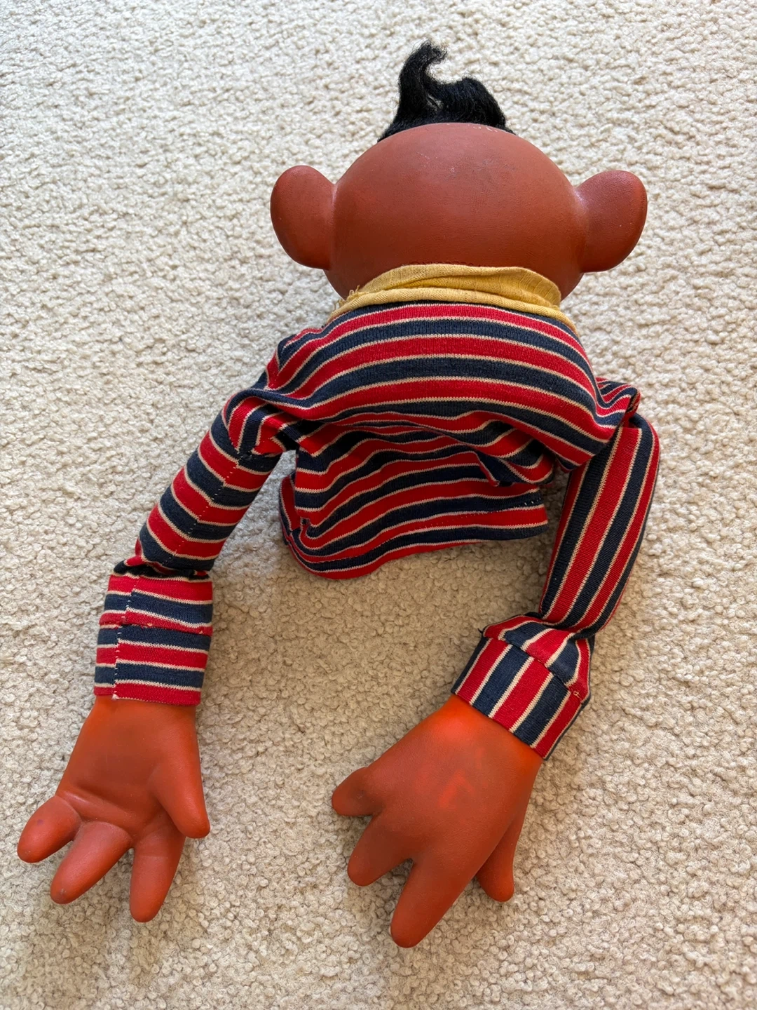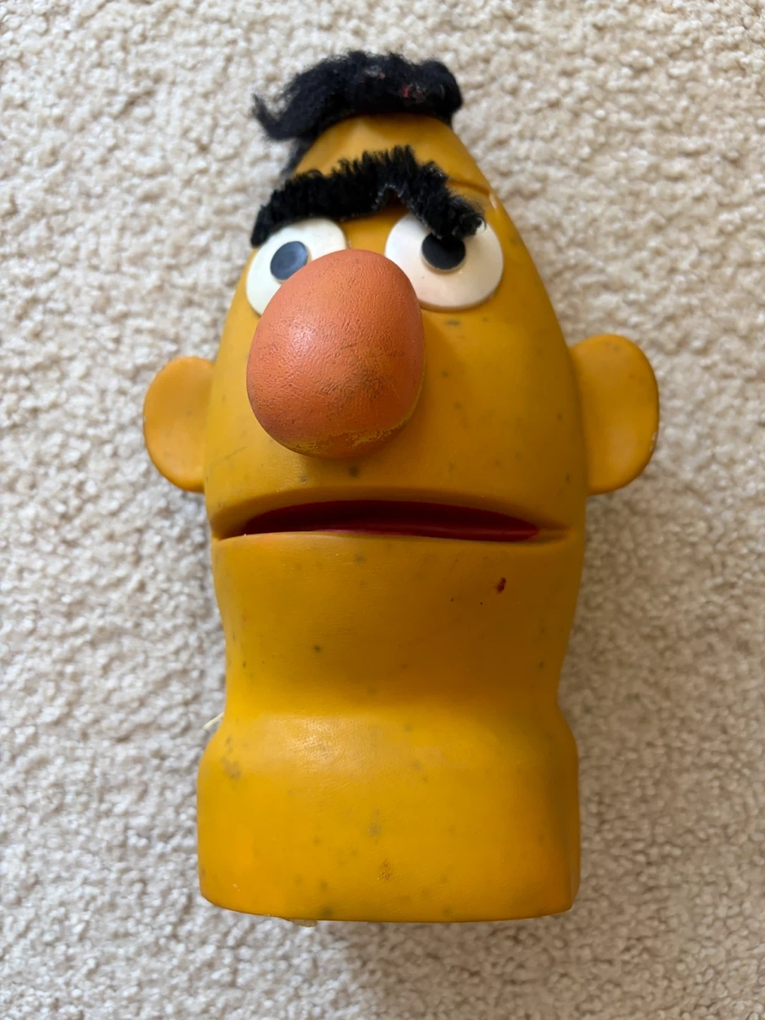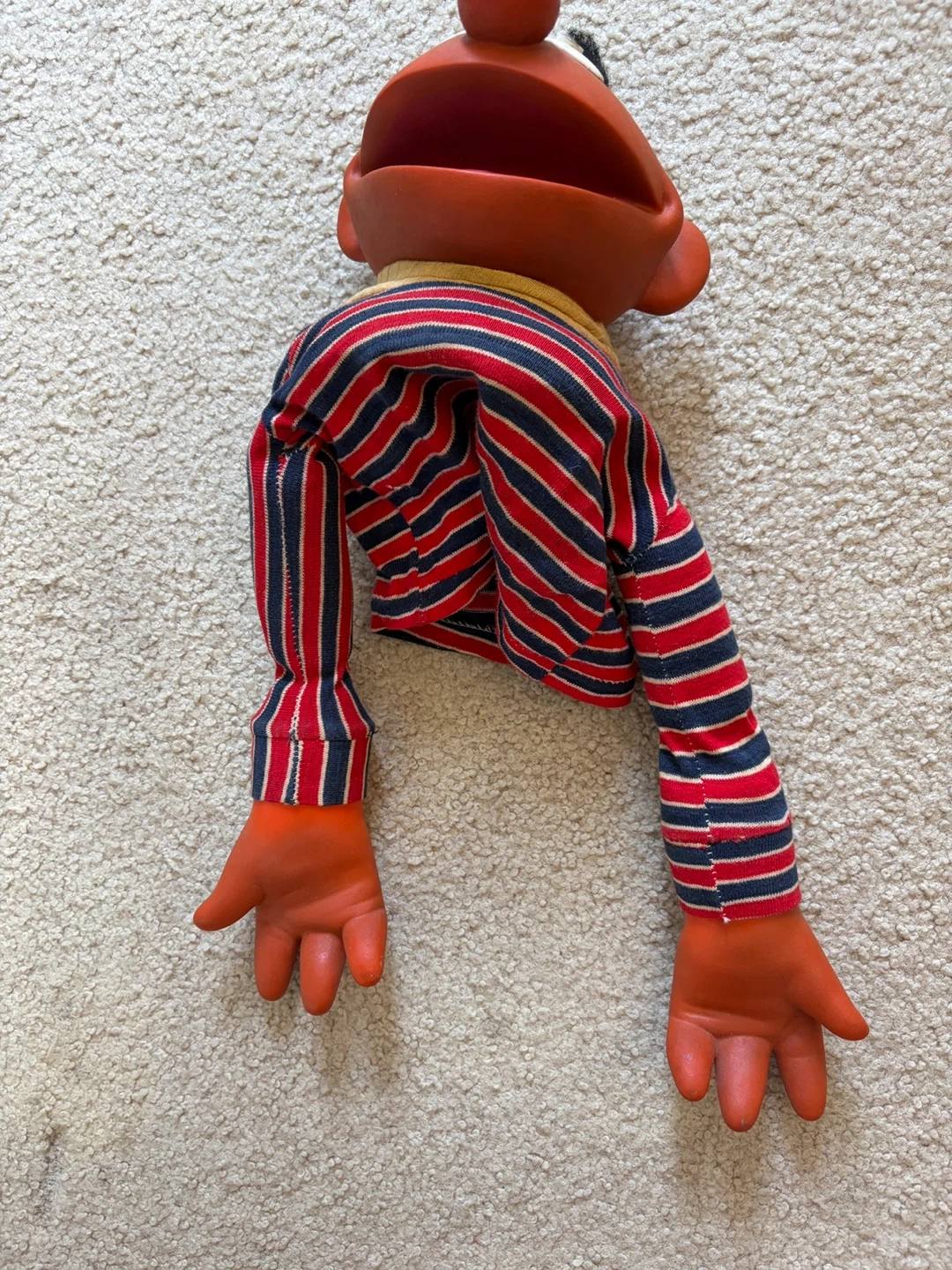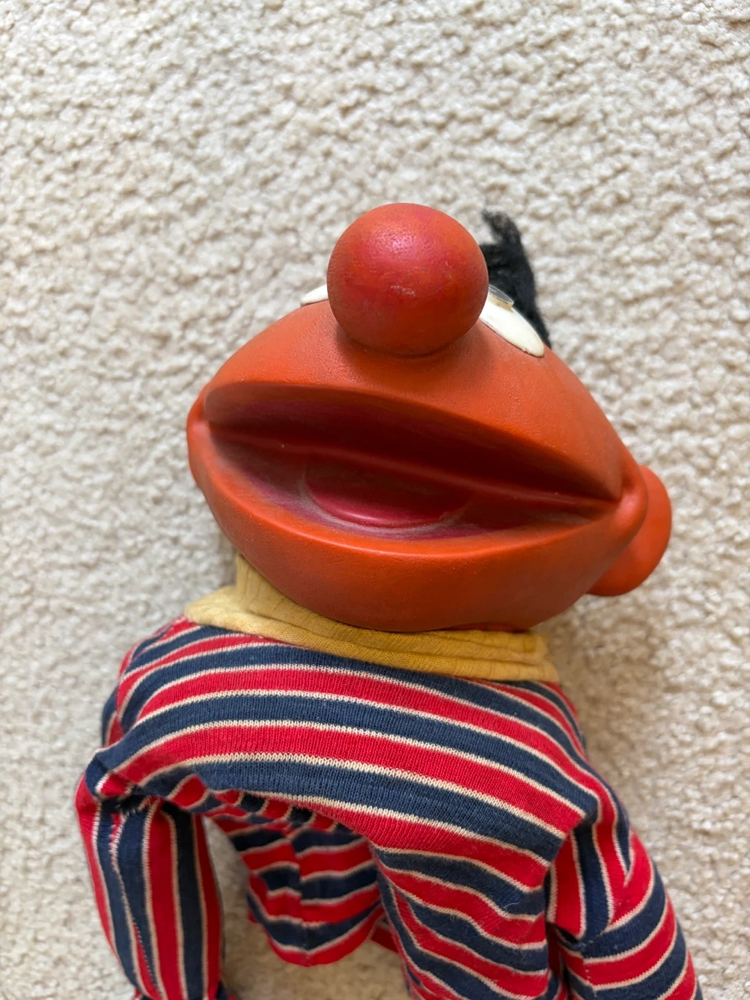 Classic Bert and Ernie hand puppets with their iconic striped shirts. Features vinyl heads and fabric bodies. These puppets are great for interactive play and storytelling!