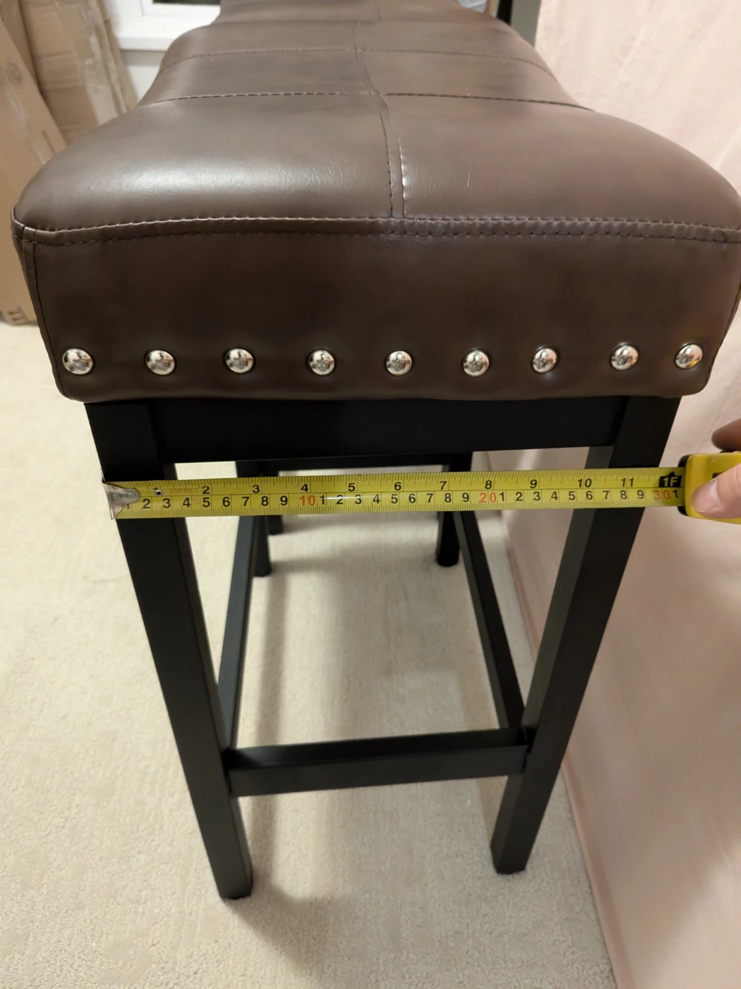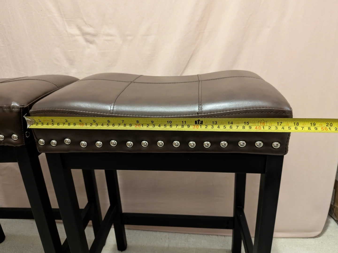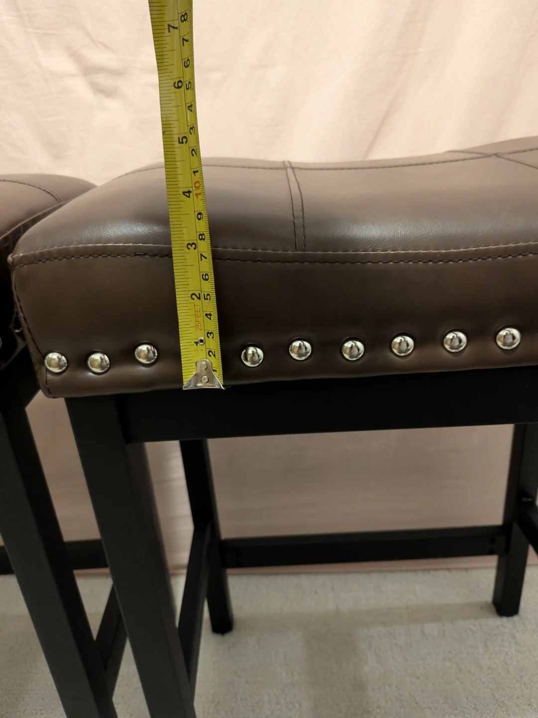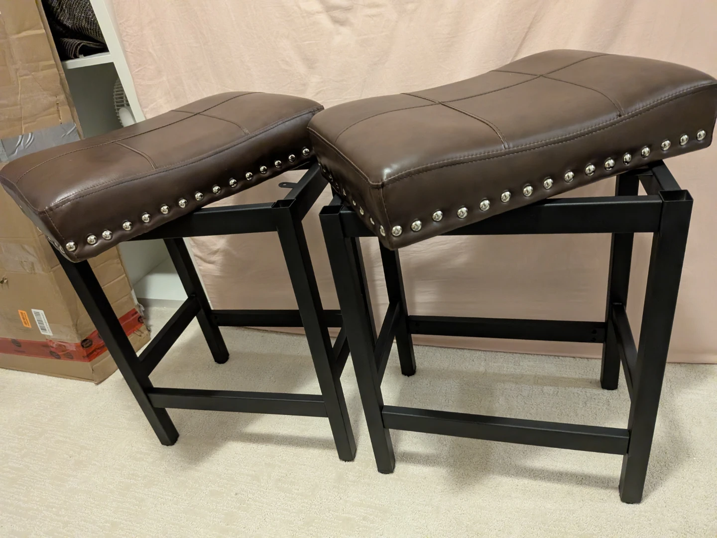 Selling a set of two brown faux leather bar stools. They're in great shape and would look lovely in any kitchen or bar area.