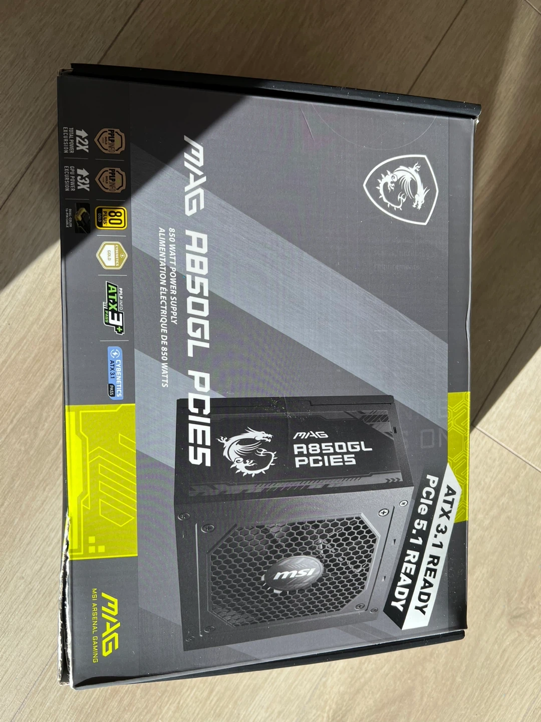 This is an MSI MAG A850GL PCIE5 850 Watt power supply. It's ATX 3.1 ready and PCIe 5.1 ready. Includes all original components and packaging.