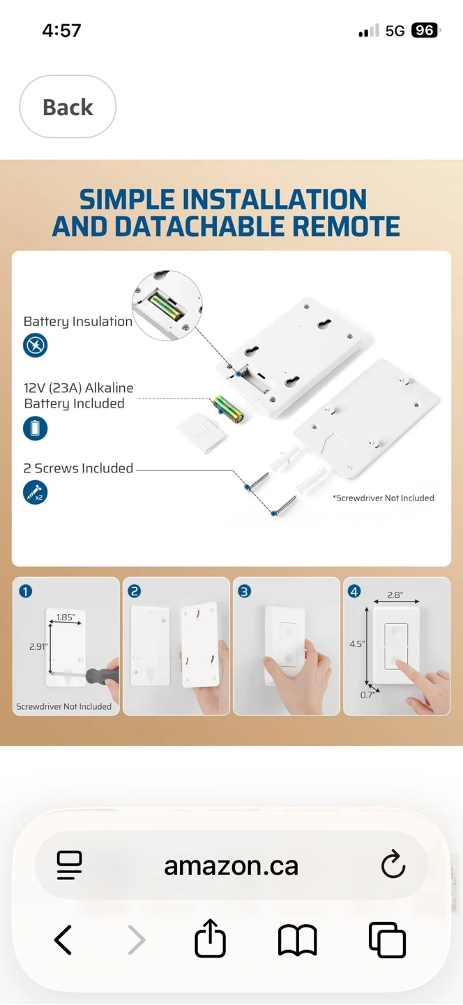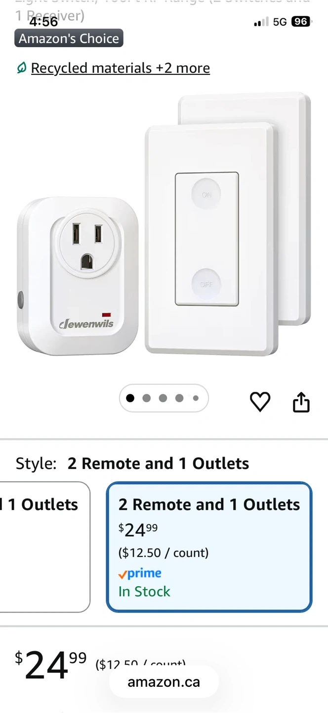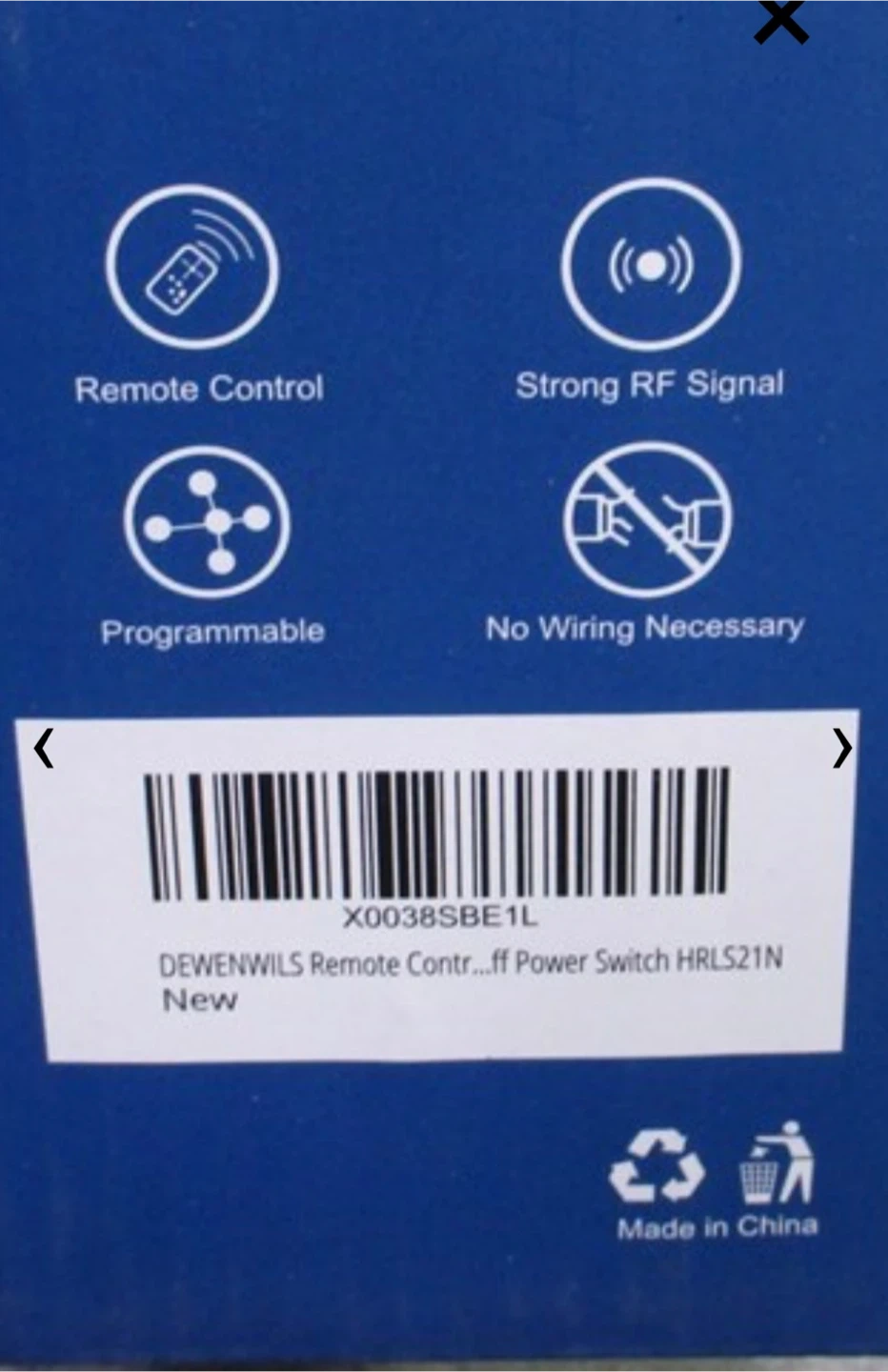 This Jewenwils remote control outlet comes with a detachable remote. It features simple installation with no wiring necessary. A 12V (23A) alkaline battery and 2 screws are included. This retails on Amazon for $25 plus tax