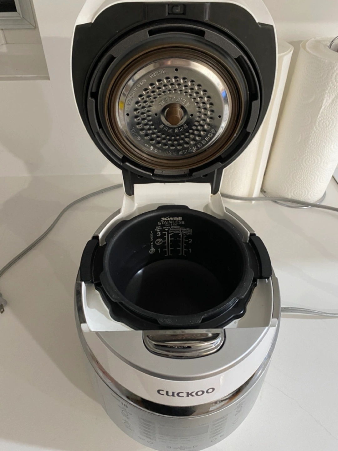 Cuckoo Electric Induction Heating Pressure Rice Cooker. Metallic colour. Model CRP-EHS0309F. Features multiple cooking functions. Made in Korea. 3cups