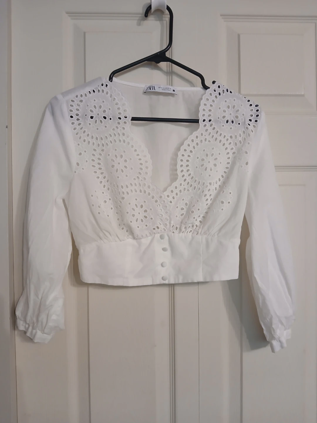 - Zara white openwork embroidery blouse, size medium - $39