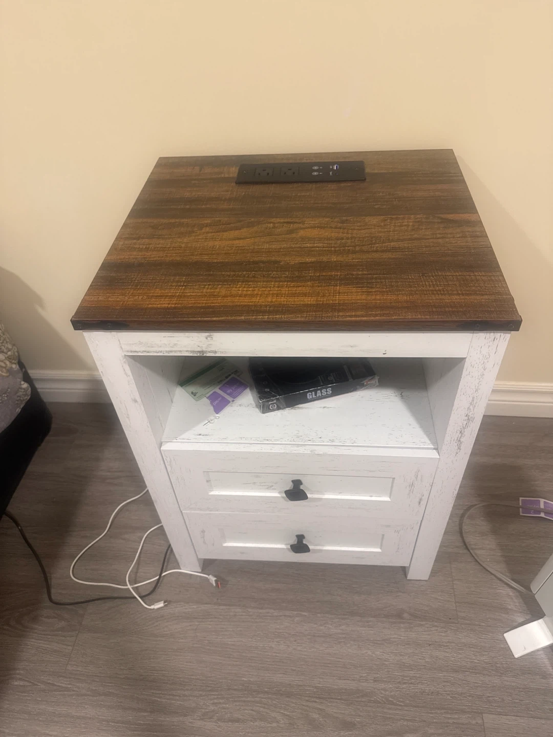 Rustic Farmhouse Style Nightstand with Built-in Outlet