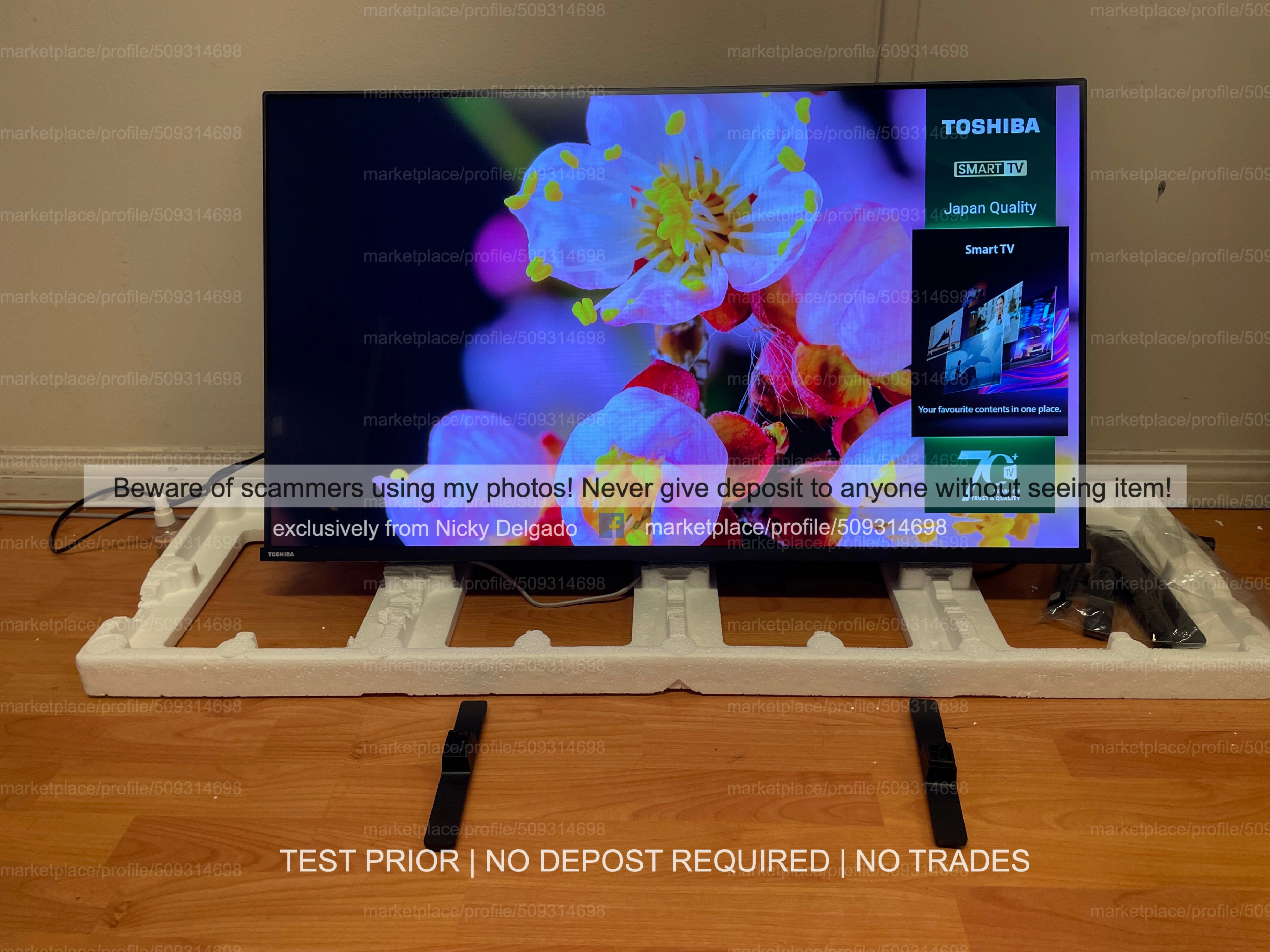 Selling several new and like new new condition state Toshiba 43" 43V35MC 1080p HD LED Vidaa Smart TV. Perfect working order! 2023/24 edition. This is the newest model! Comes with Original Remote, legs/stand, power supply, box. Used for staging so barely on. ULTRA THIN and Amazing build quality!