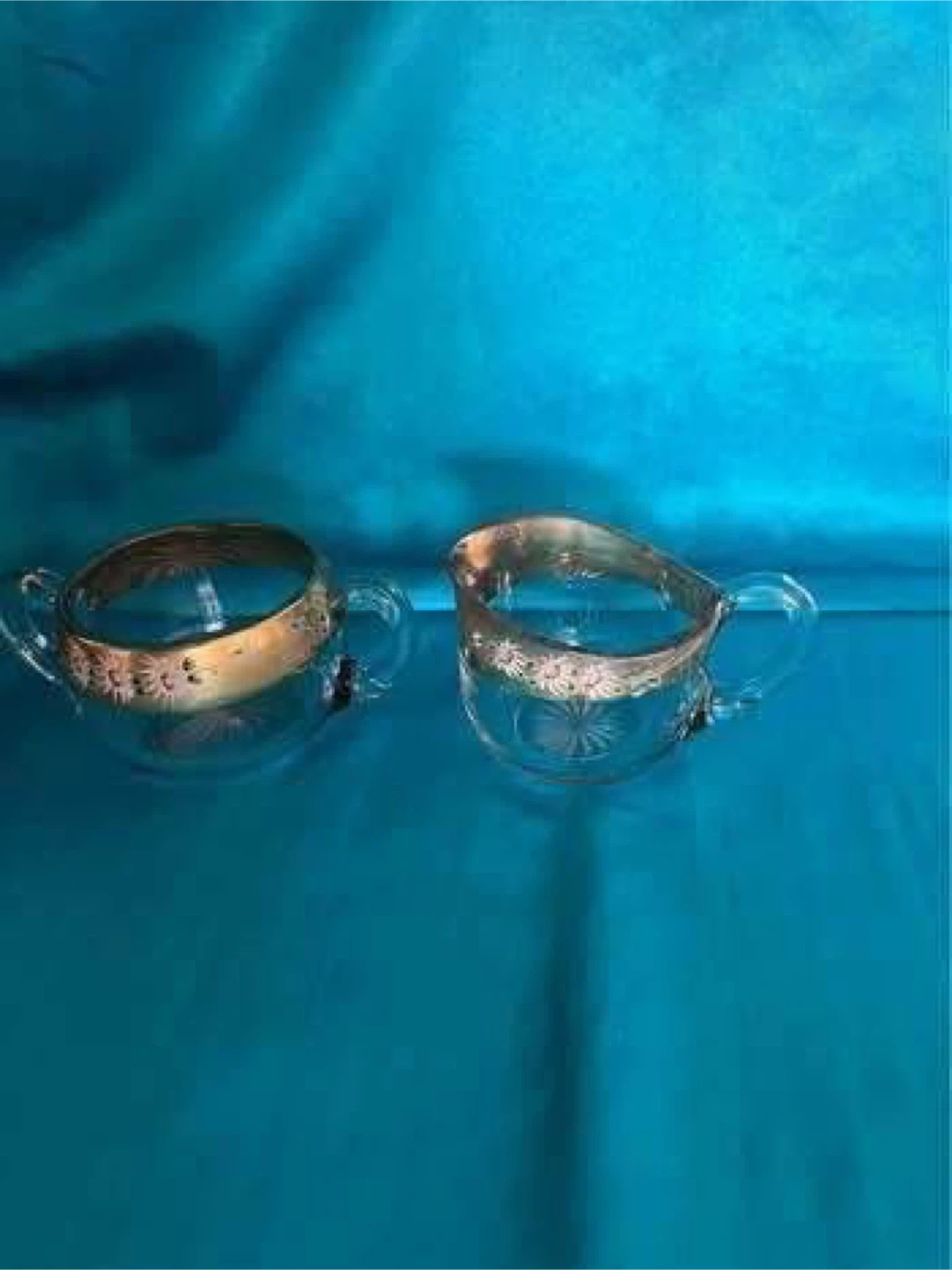 Selling a lovely vintage clear glass cream and sugar set. They feature delicate floral details and gold trim. Perfect for adding a touch of elegance to your table setting!