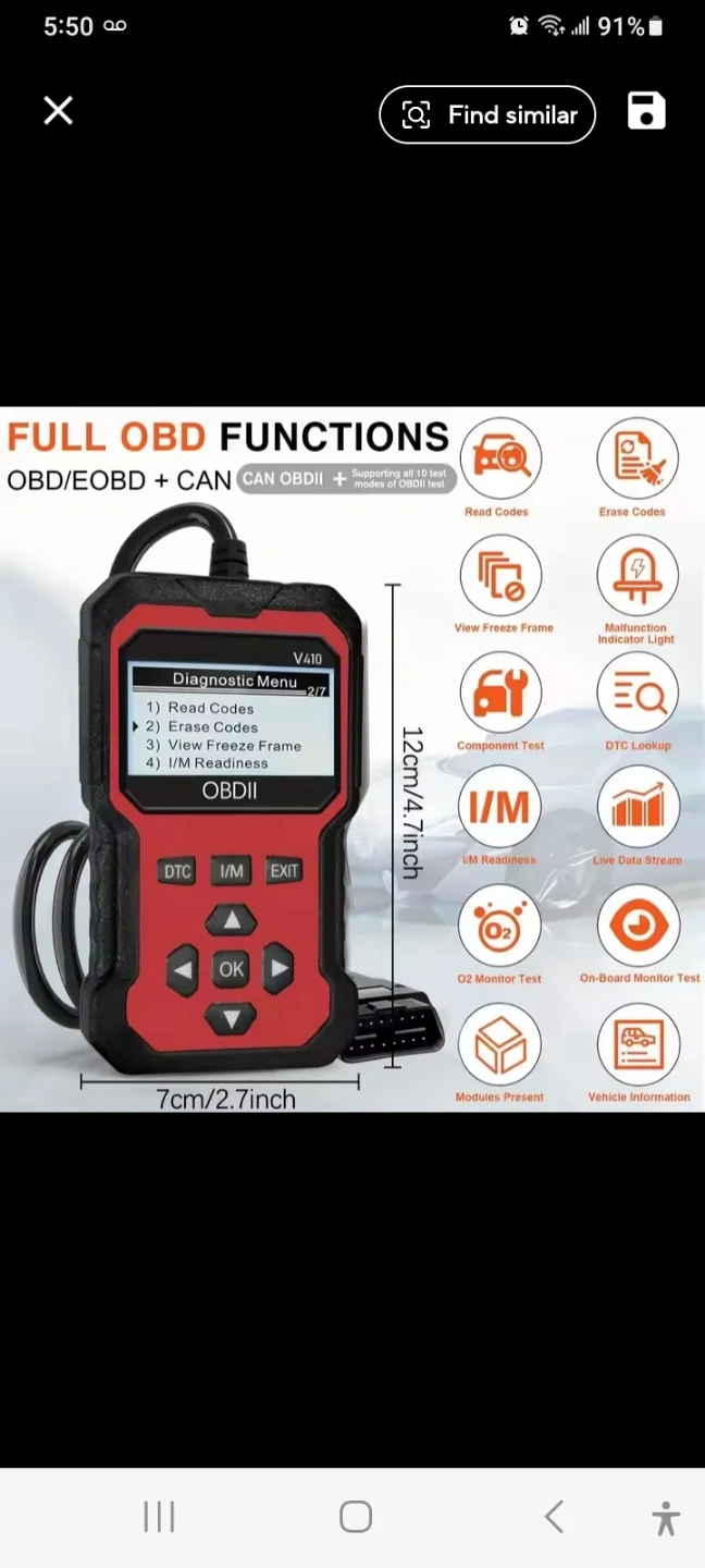 Selling a brand new never used in box. This OBDII scanner helps quickly diagnose engine and emission issues. It's designed for reading and clearing fault codes, viewing freeze frame data, and checking I/M readiness. It supports full OBDII functions for quick emission inspections. Useful for anyone needing to check their vehicle's status. Pick-up Walkerville/East Windsor. Please check out my other listing.