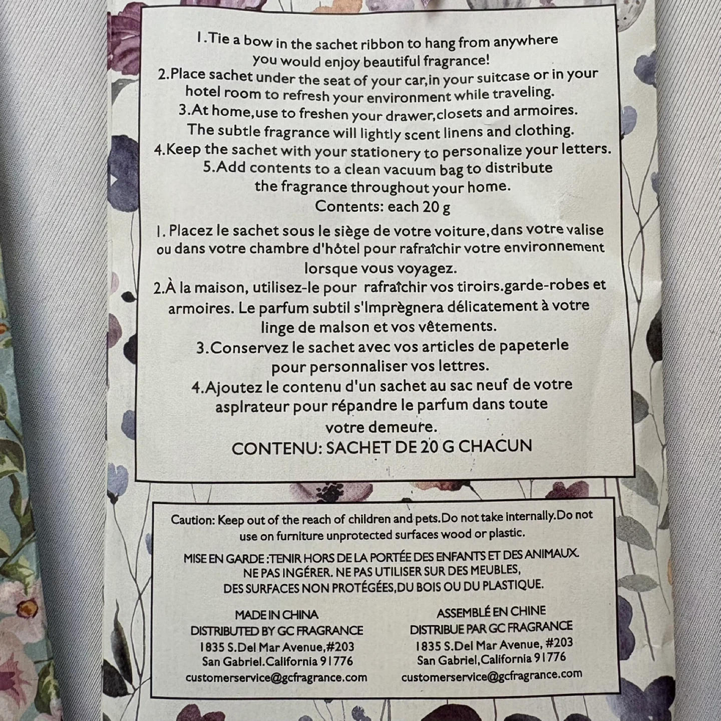 GC Fragrance, scented sachets, closet freshener, floral sachets, drawer sachets, laundry room decor, home fragrance, gift set, travel essentials, rose print, botanical print