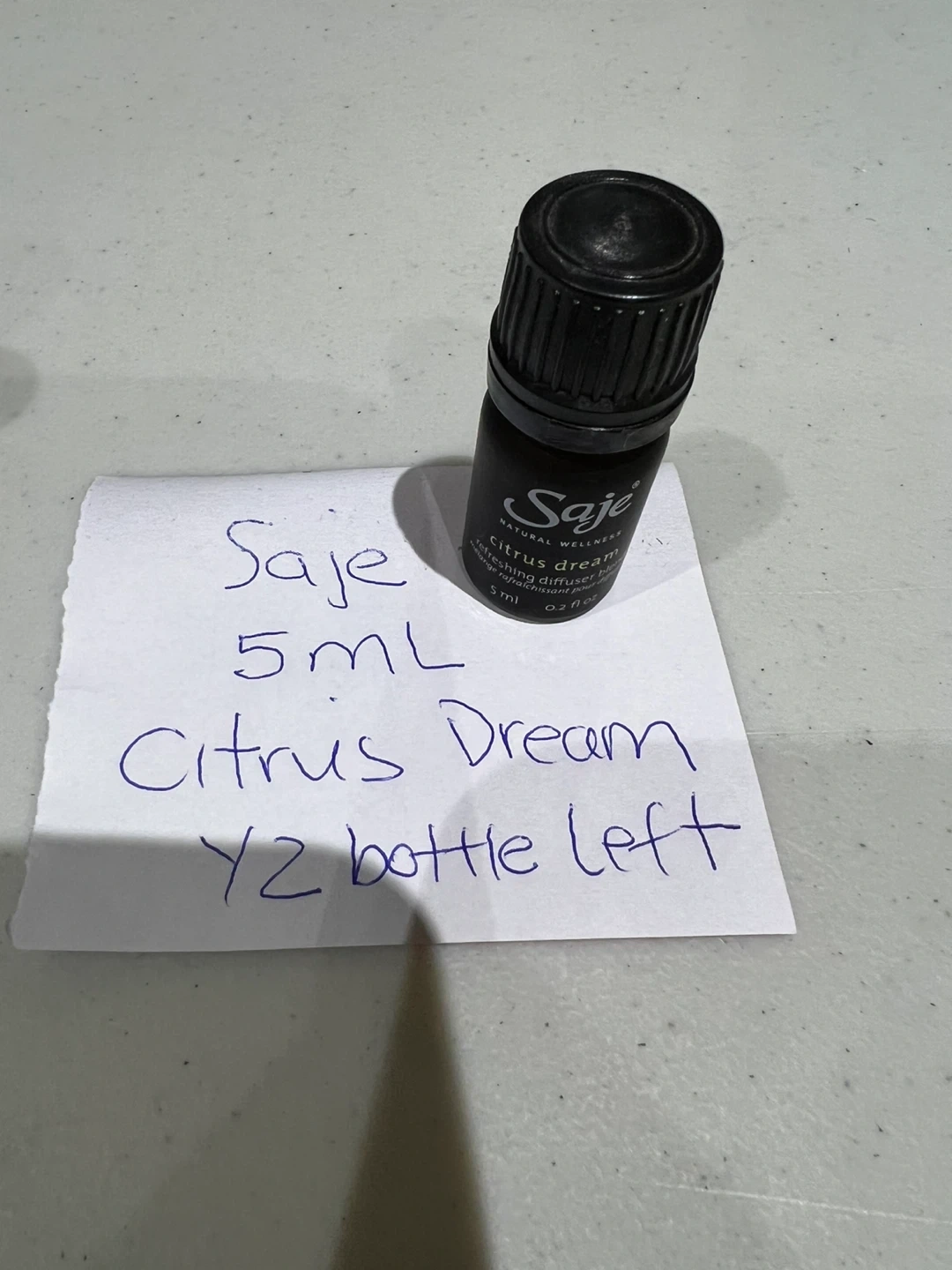 It's a 5ml bottle of Saje Citrus Dream refreshing diffuser blend. The blend is formulated for diffusers. This bottle has 1/2 left.