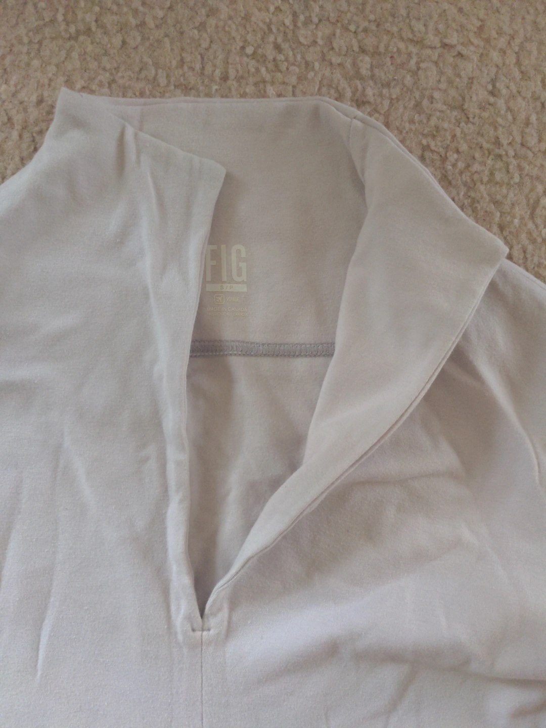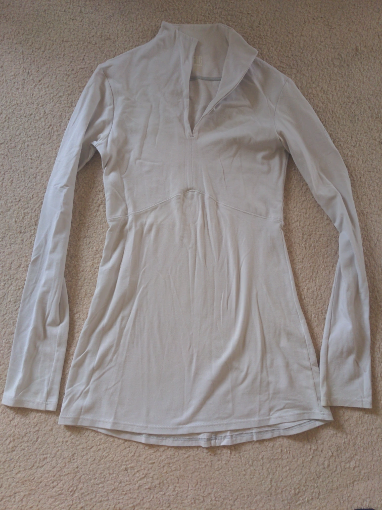 Light grey long sleeve top. Mock neck. 91% cotton, 9% spandex. Size small. Worn couple times.