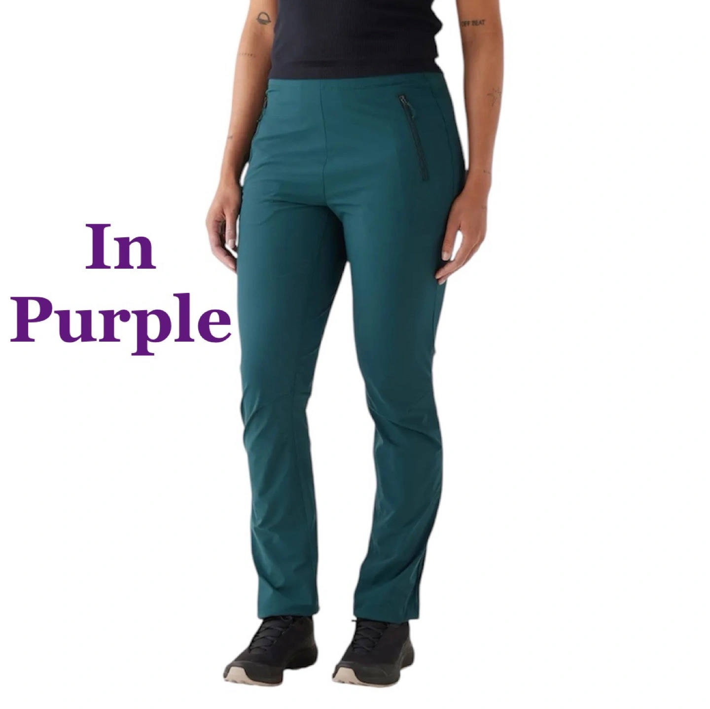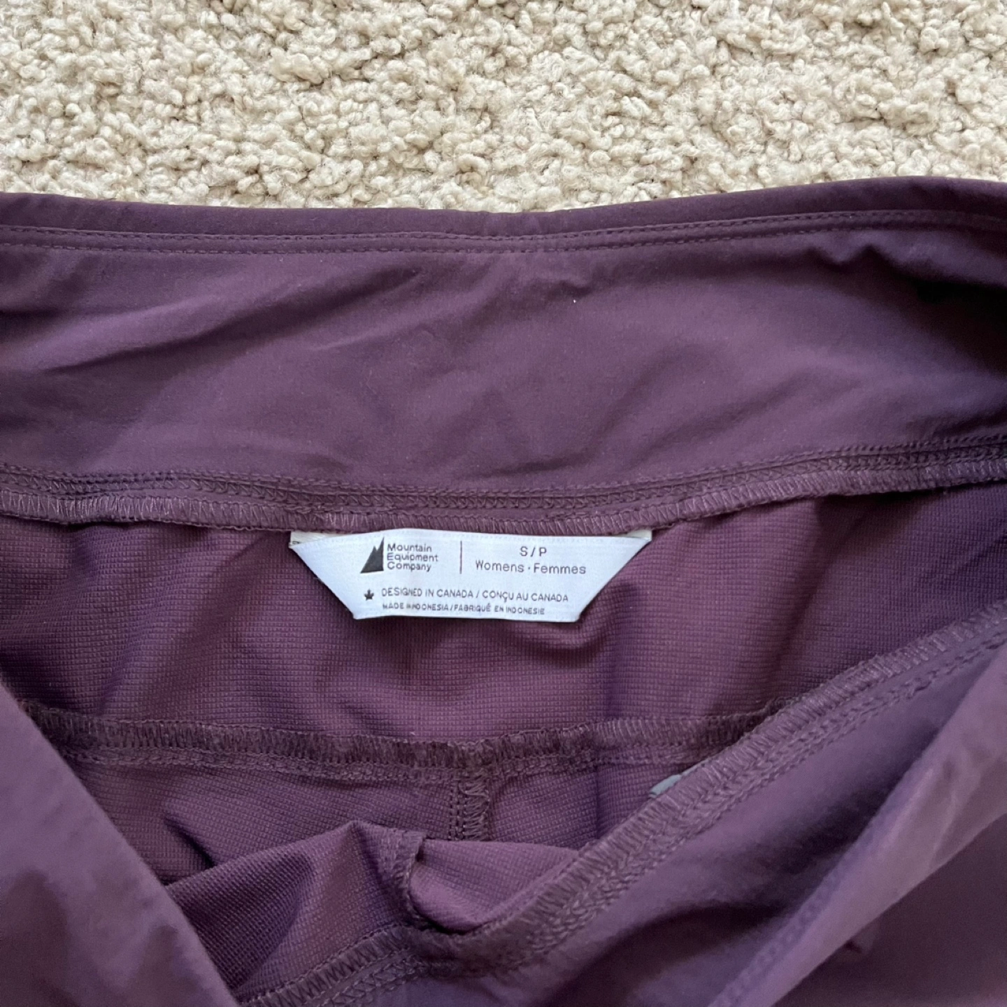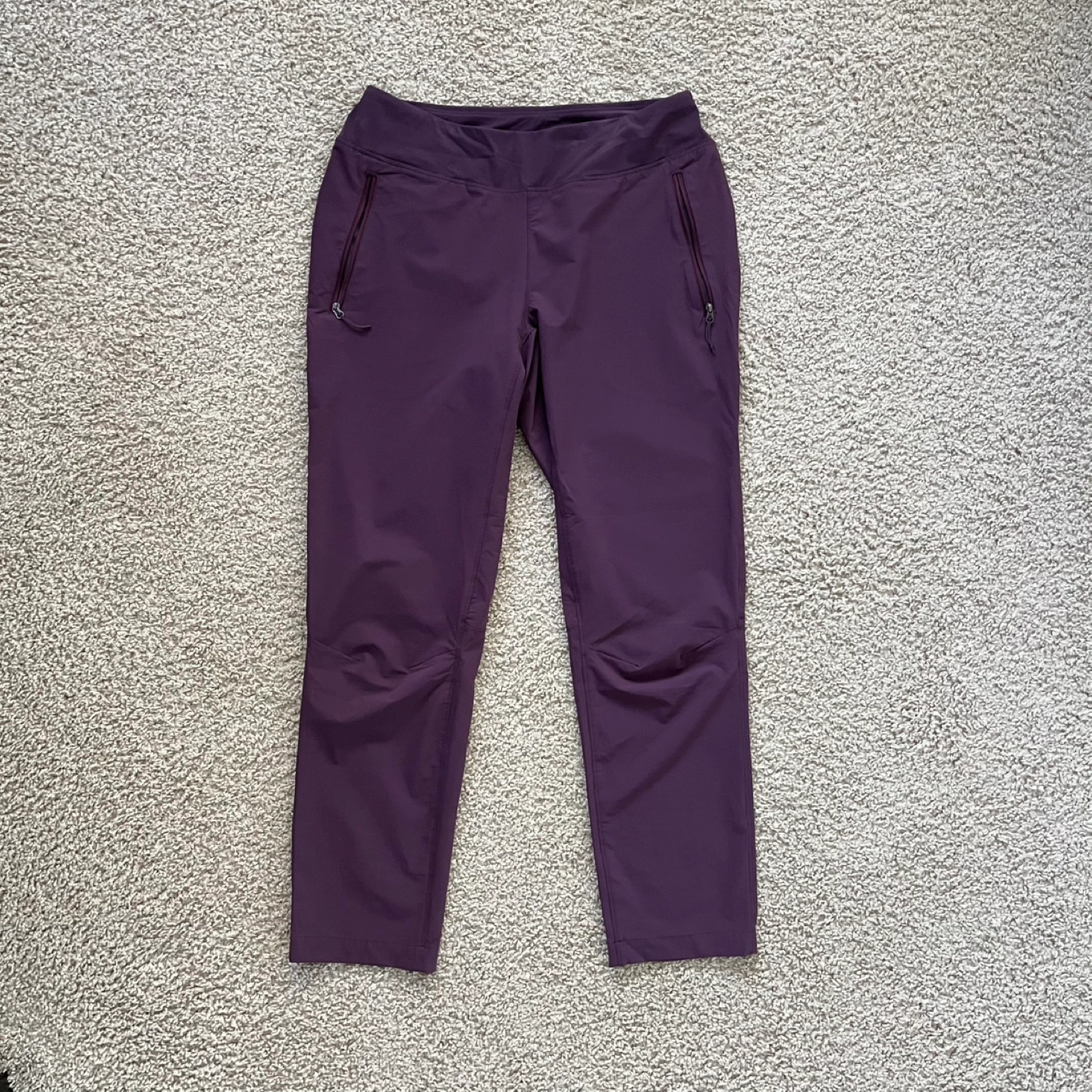 Mountain Equipment Co-op purple hiking pants. Size small. Two front zippered pockets. Designed in Canada. Very good condition, small mark on waistband.