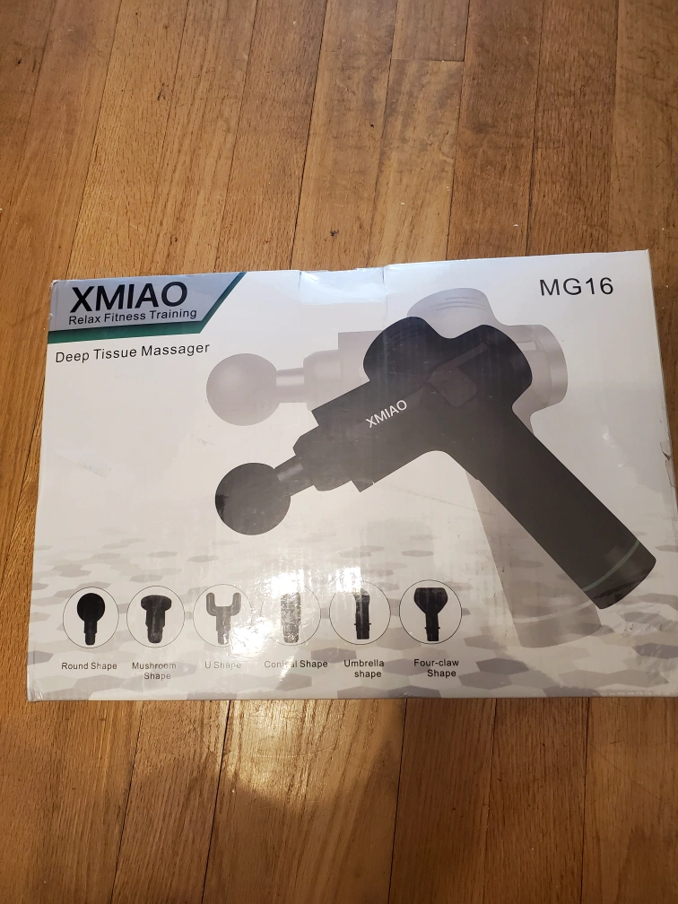 Muscle tissue massage gun deep tissue percussion massager. portable with carry case. it's quite and so easy to use.