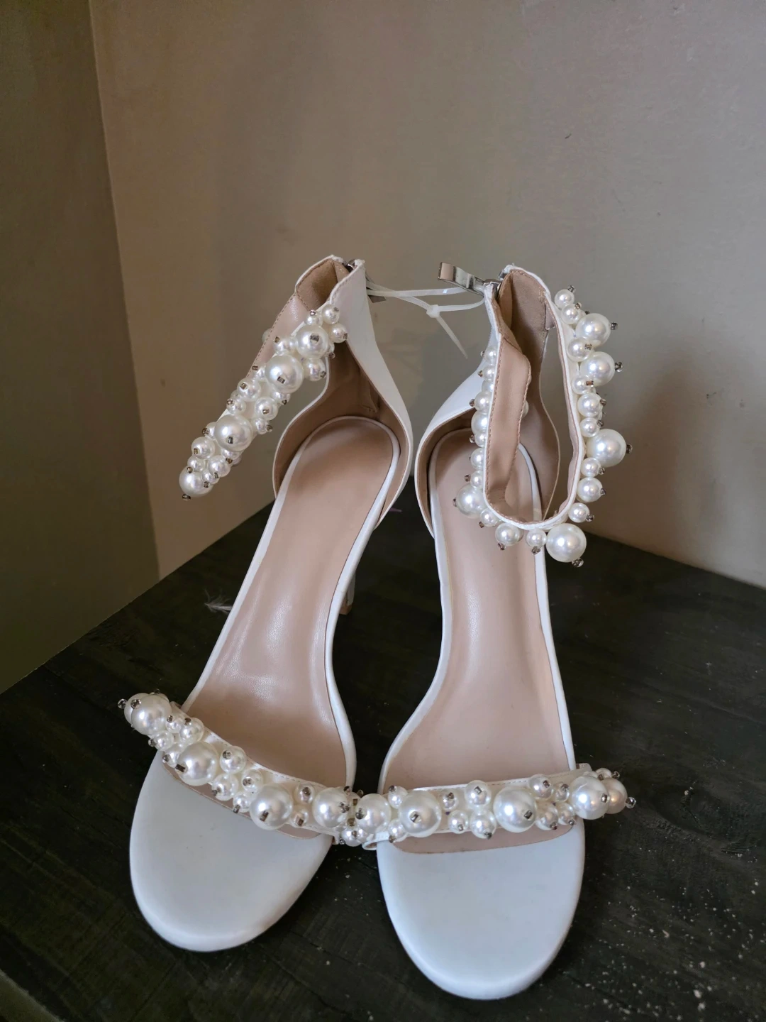 White Heels with Pearl Embellishments
