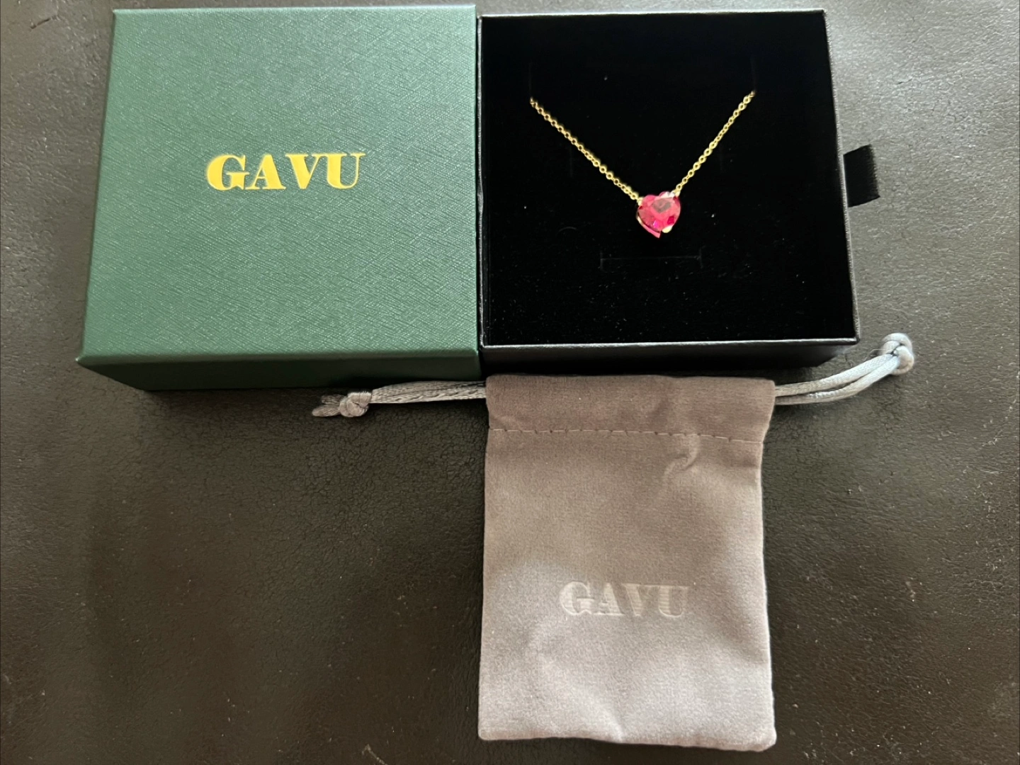 Selling a beautiful GAVU heart necklace! It's made of 925 sterling silver and features a cubic zircon birthstone heart. It comes with its original box and a cute little pouch to keep it safe. I have the Red heart color