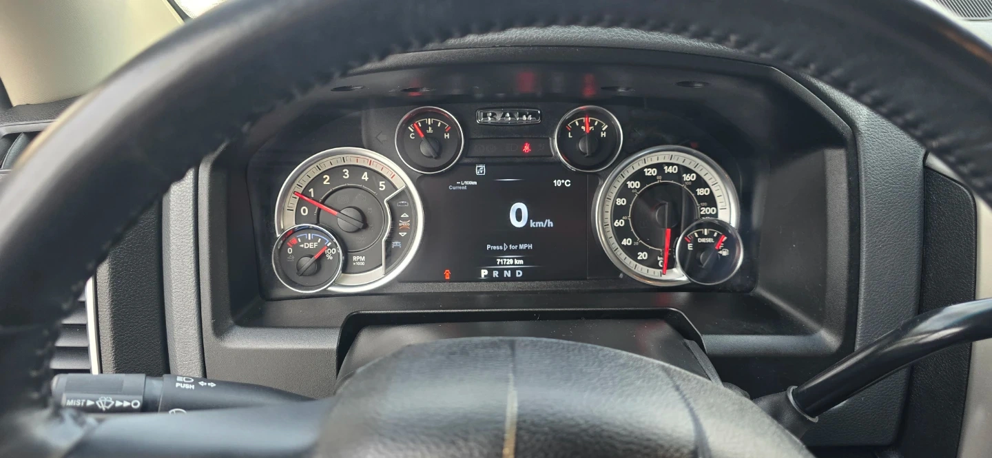 Dodge Ram 2018 2500 SLT 4x4 diesel pickup truck. It has a spacious interior with comfortable seating for multiple passengers. 71770 km