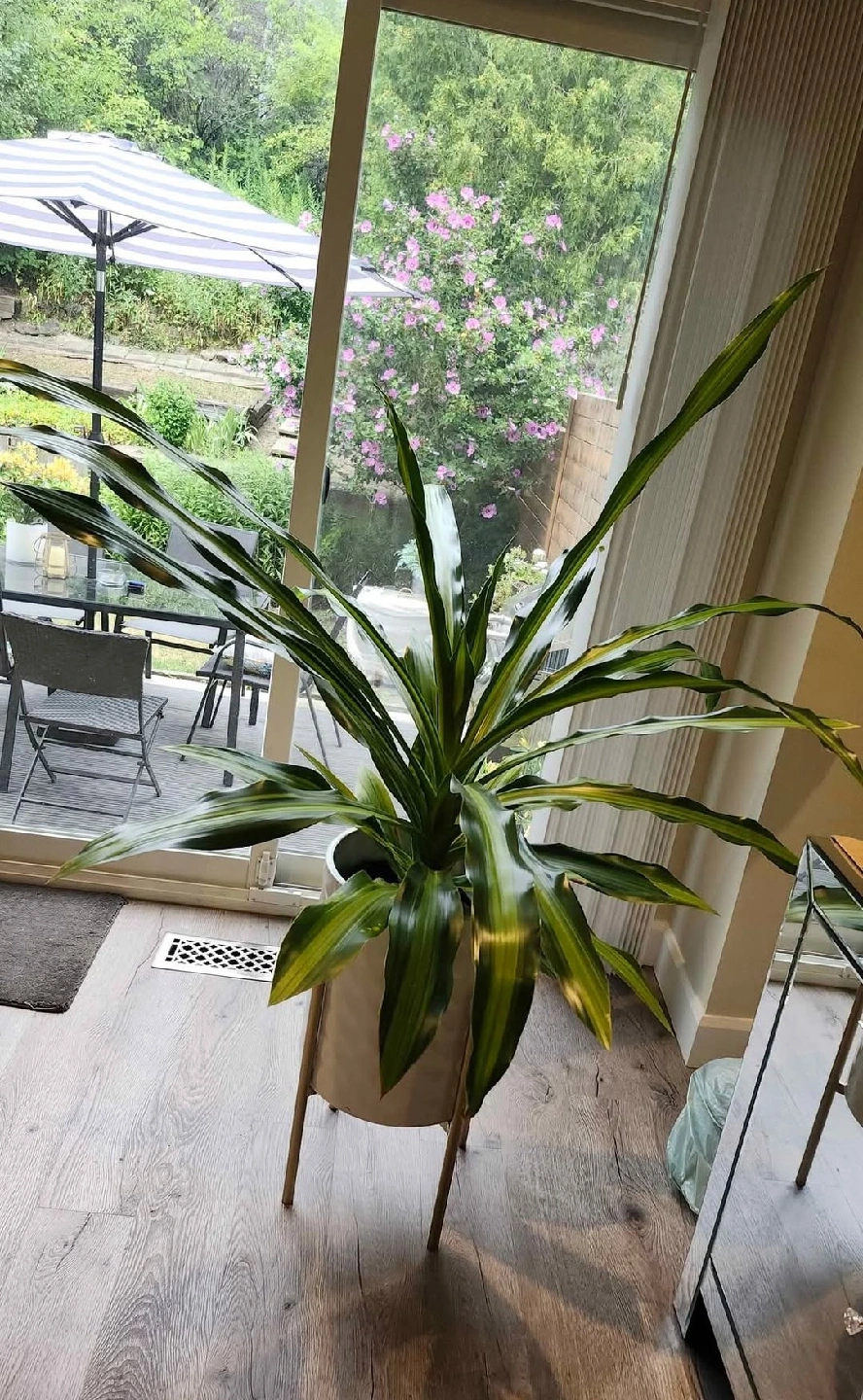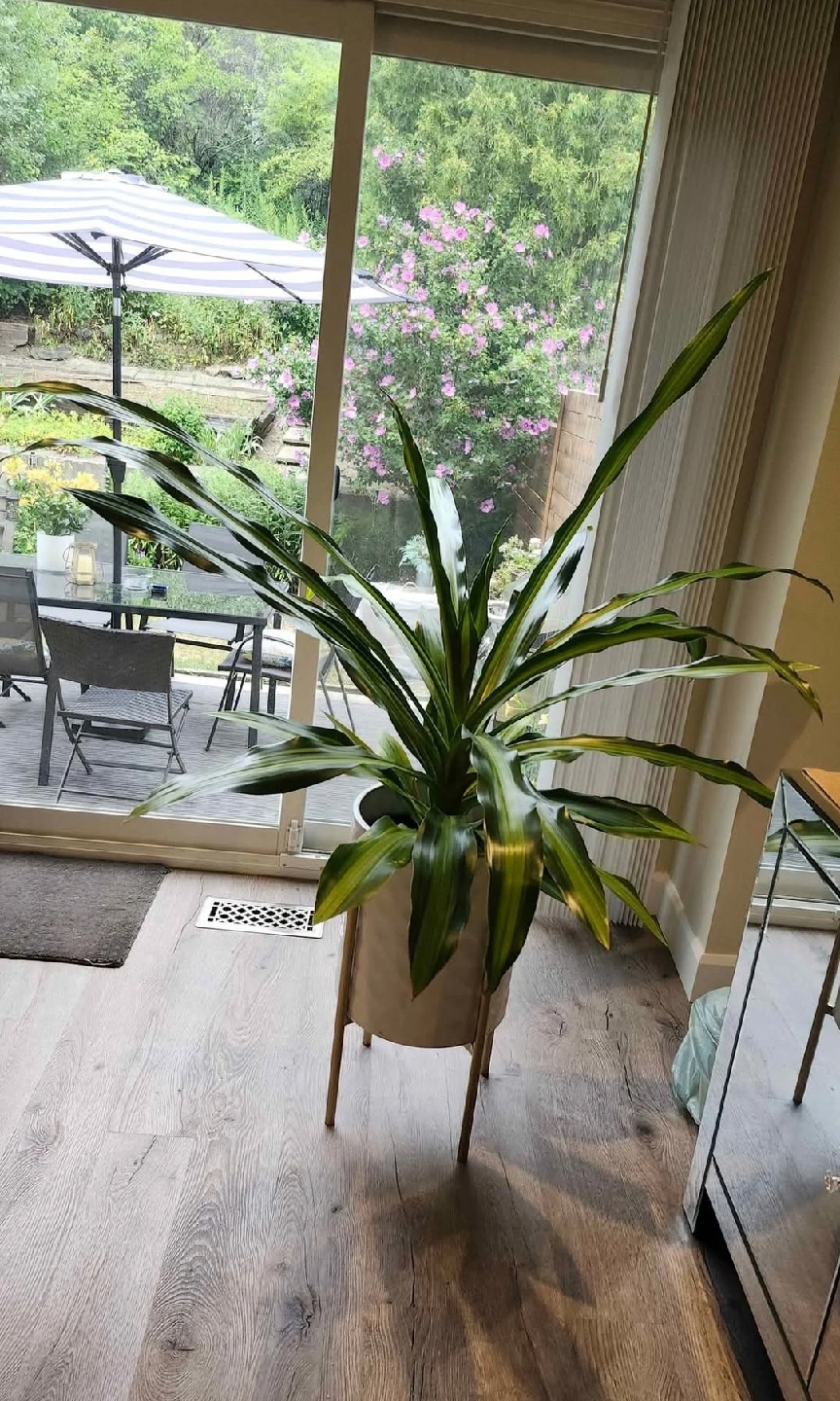 Large Dracaena Plant PRICED TO SELL @ $30 or nearest offer! Beautifully matured in healthy condition, but does have some minor yellow spots on lower leaves due to dry air conditions. Nothing a little TLC can't fix with some regular spraying of leaves for added humidity. This is a great statement piece if you have some space to fill - Approx. 4.5 ft wide x 4.5 ft high. Pickup close to Bathurst & Steeles corridor off New Westminster in Thornhill/North York. [White Planter Stand Not Included; comes with a black PVC planter stand on floor].