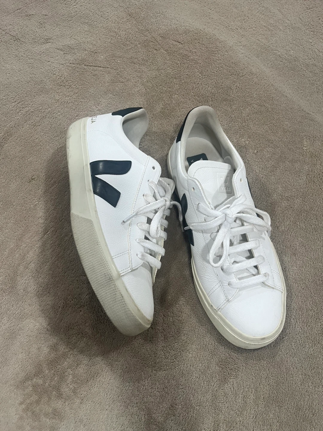 Veja Esplar leather sneakers in white with a black logo. These are in great condition and ready for a new home! They're stylish and comfortable