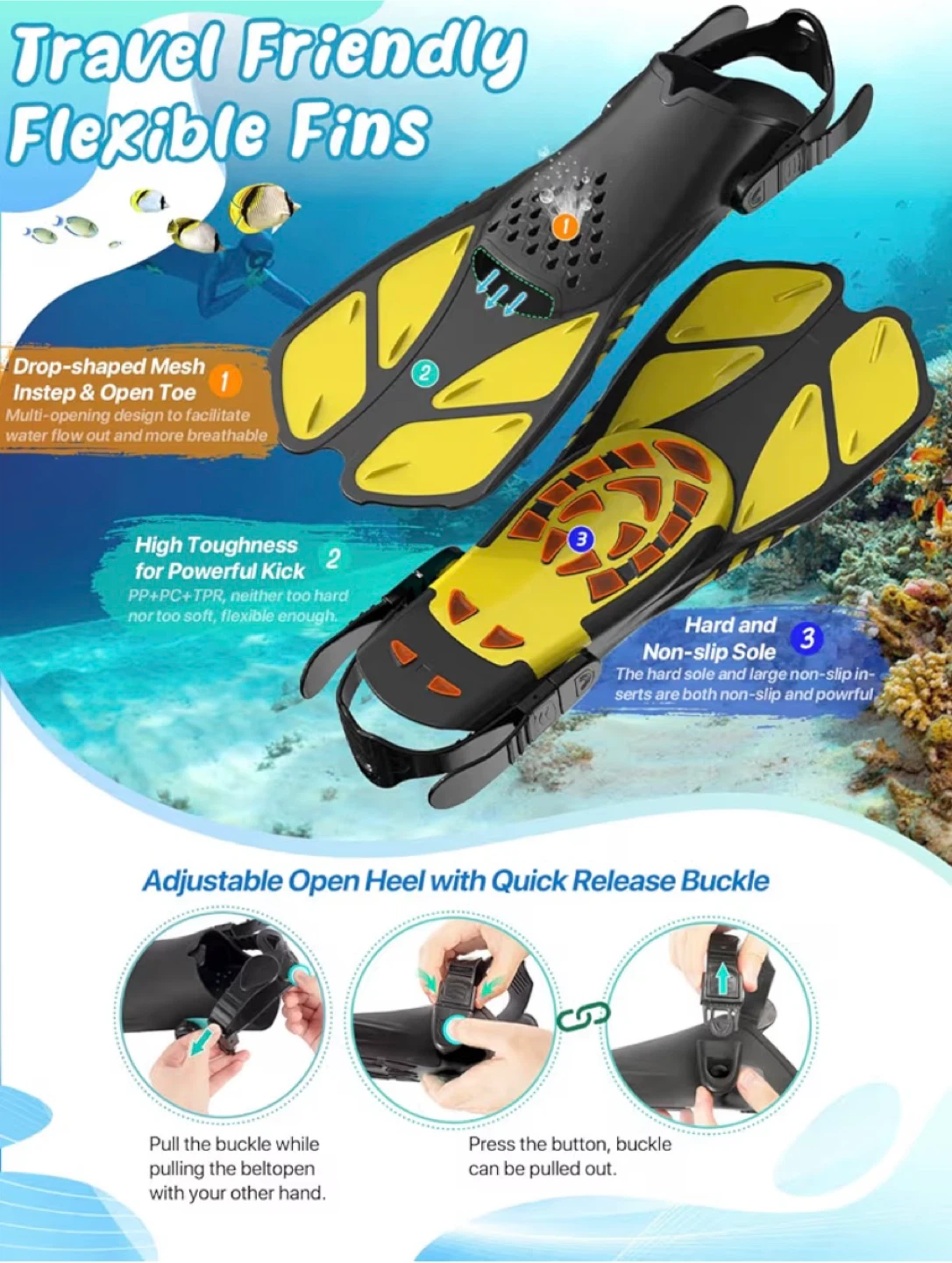 Zenoplige Snorkel Set - Mask, Fins, Snorkel, and Bag