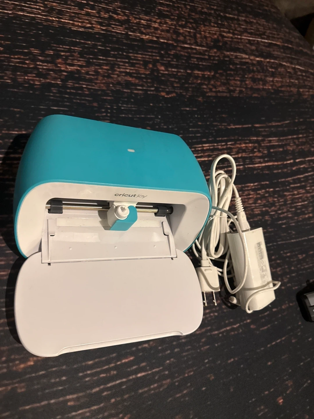 This Cricut Joy is a compact smart cutting machine that makes it easy to create custom decals, banners, and more. It's perfect for small projects and quick crafts. The machine comes with its power adapter.