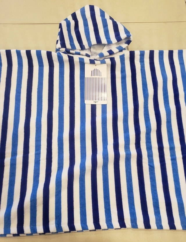 Kids Hooded Towels Blue White Striped 30x50 - New
