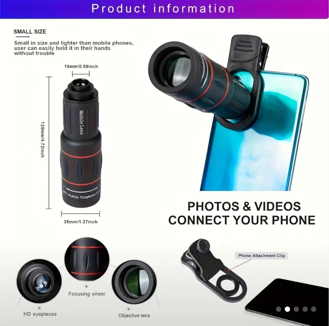 I am selling a brand new 18x HD Telephoto lens that attaches to your phone or tablet to capture photos and videos with added zoom upto 18x