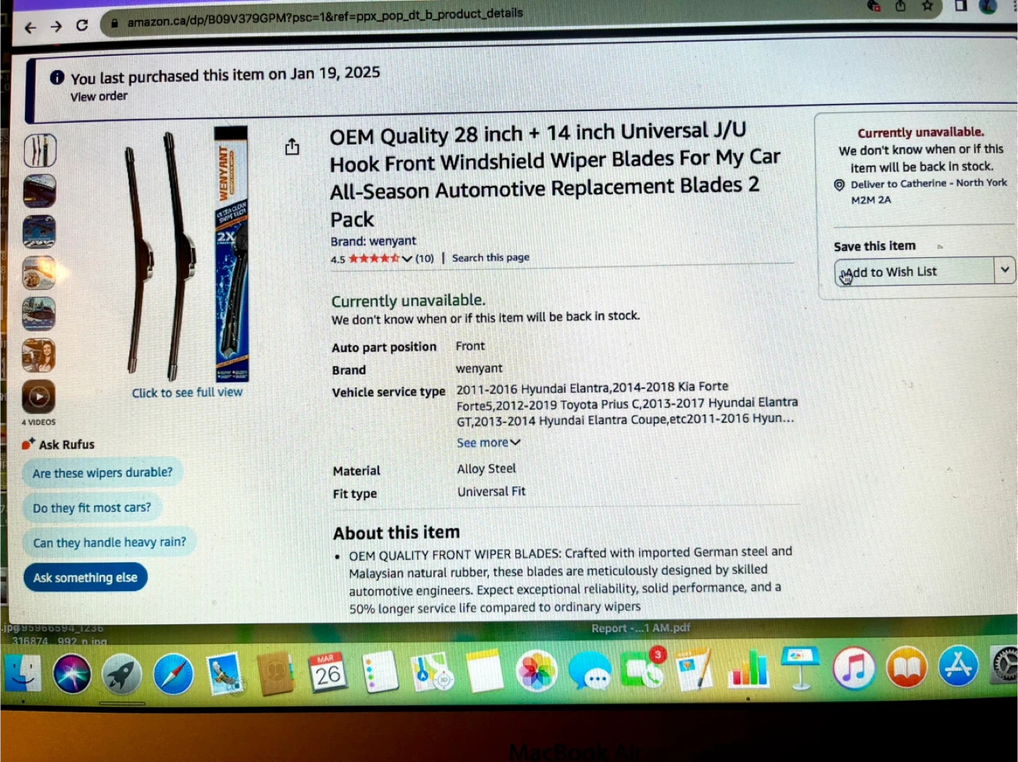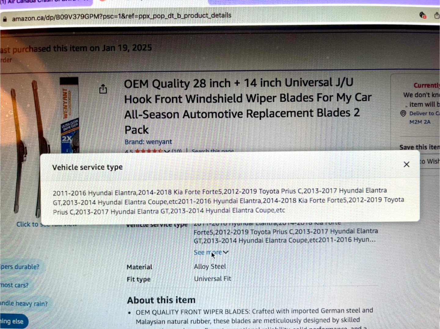 These brand new Wenyant windshield wiper blades are crafted with imported German steel and Malaysian natural rubber. They're designed for durability and optimal performance in all seasons. Blades ensure a clear view in rain, snow, or sleeting conditions. I ordered these for my Honda Fit but they did not fit. I missed the return date on Amazon so this is your big chance to get these cheap without tax. Please view the photos and read the description to determine if these will fit your car as sales are final.