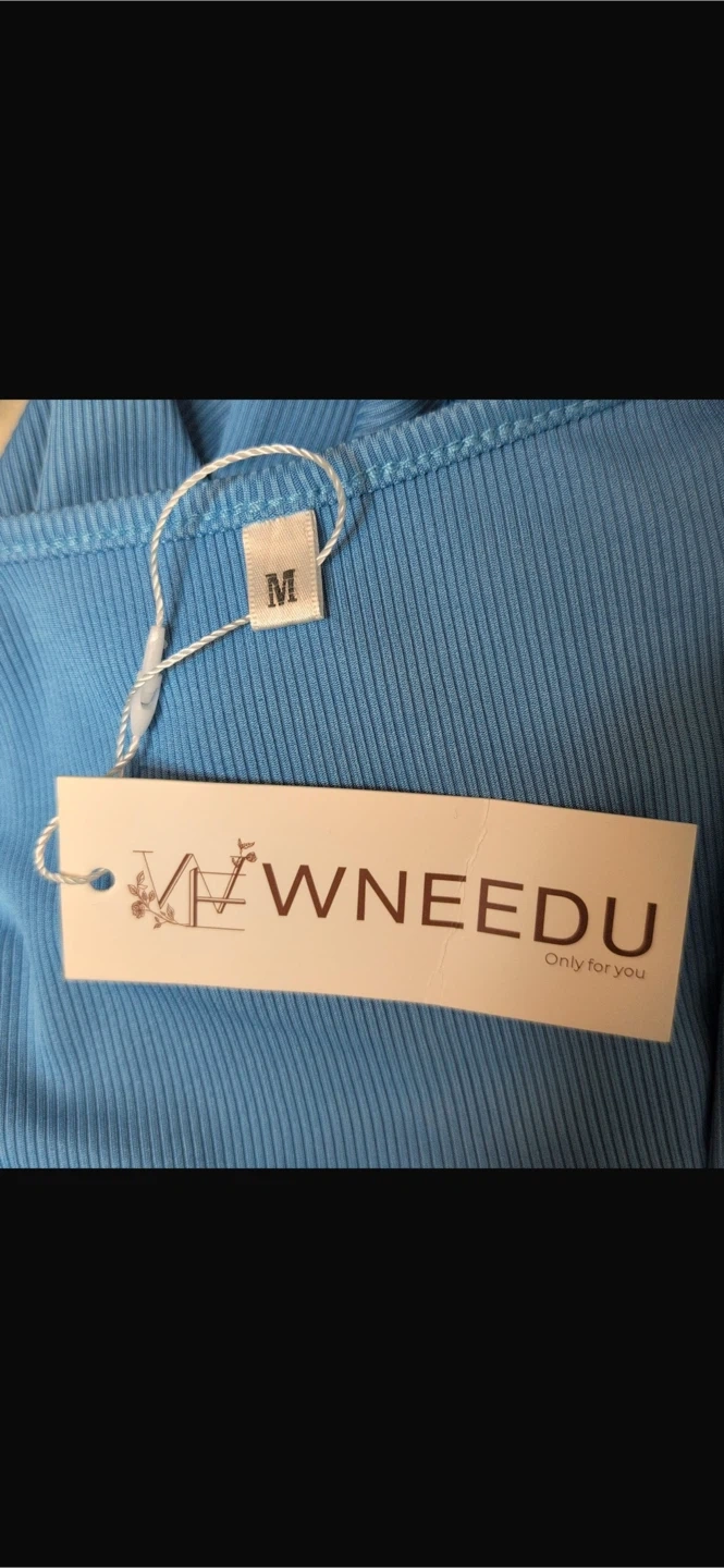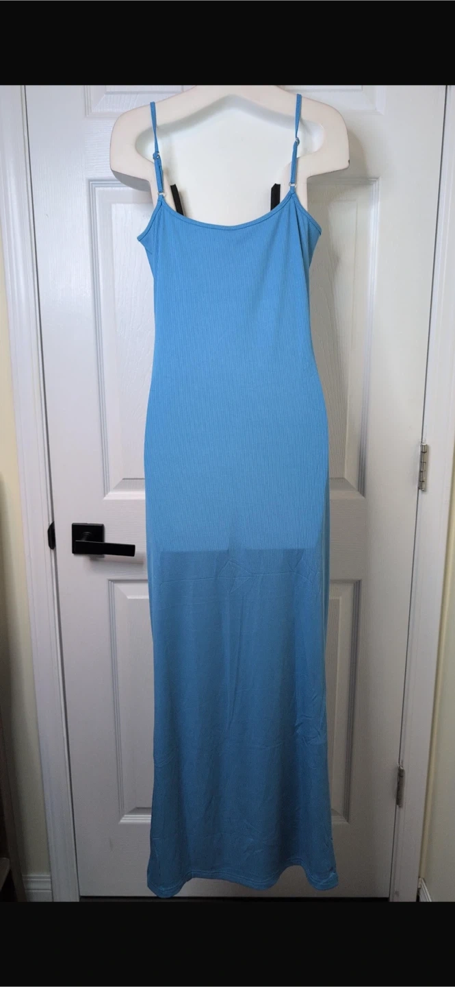 NEW! WNEEDU Blue Sexy Ribbed Spaghetti Strap Bodycon Maxi Dress