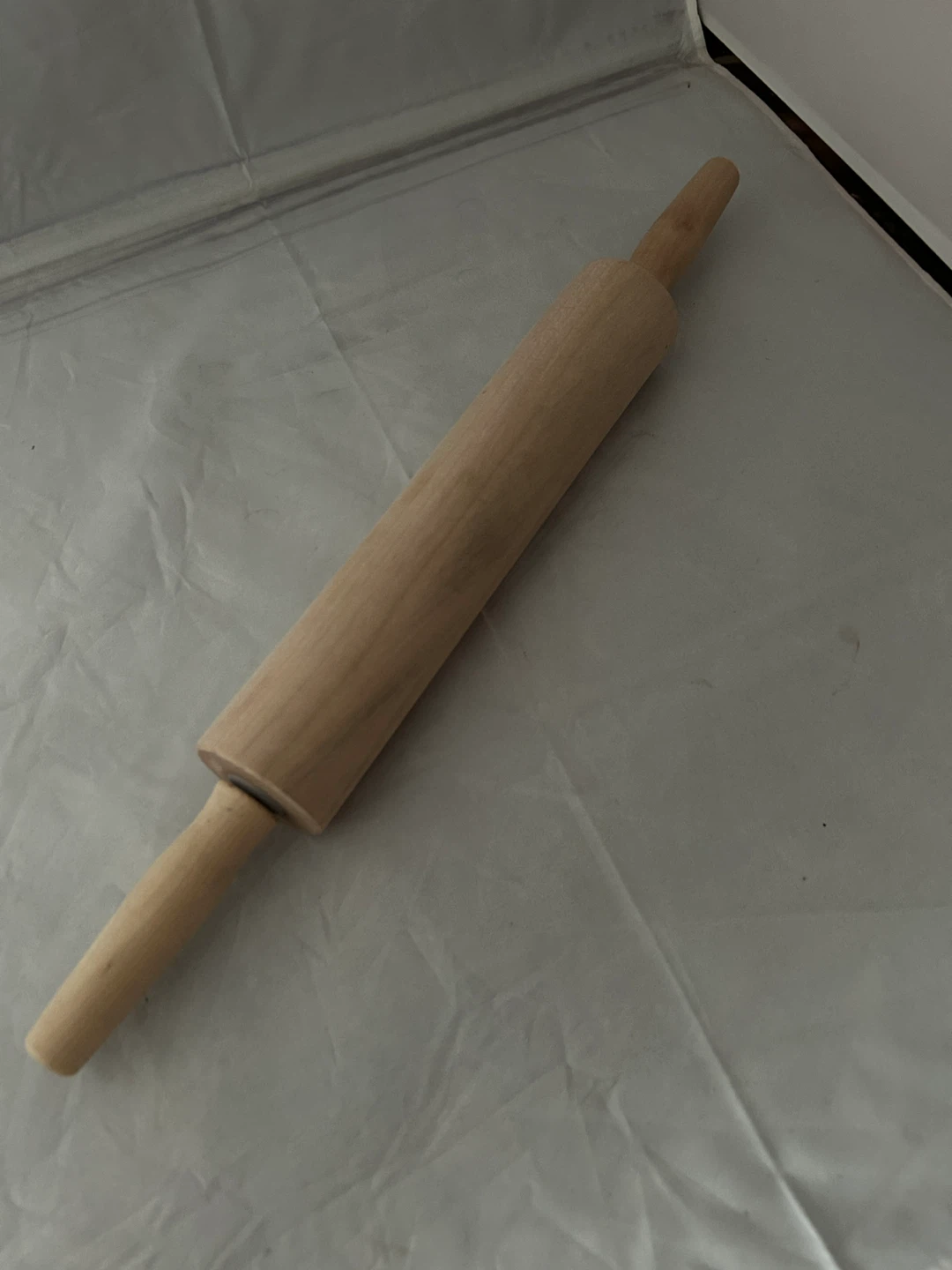 New wooden rolling pin, perfect for all your baking needs! Never used. Ready to help you create delicious treats. A simple and essential tool for any kitchen