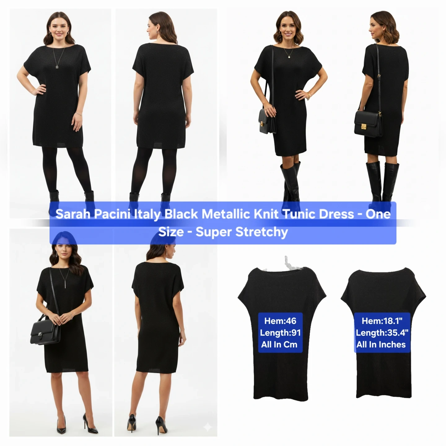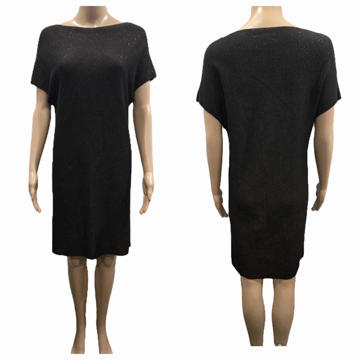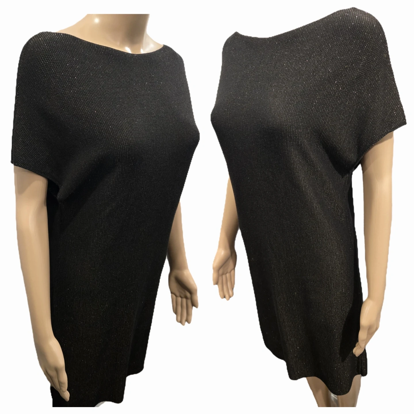 Sarah Pacini Black Metallic Knit Tunic Dress - One Size