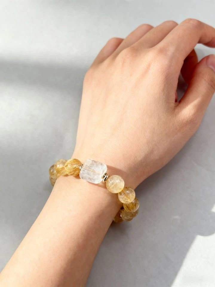 Natural Golden Rutilated Quartz Bracelet