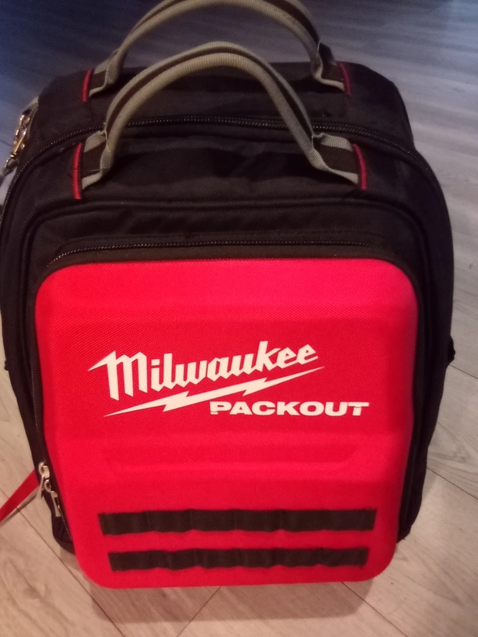 Selling a Milwaukee PACKOUT backpack designed for tool storage. Been in storage, unused. It features multiple interior pockets for organization. Asking $75 open to offers.