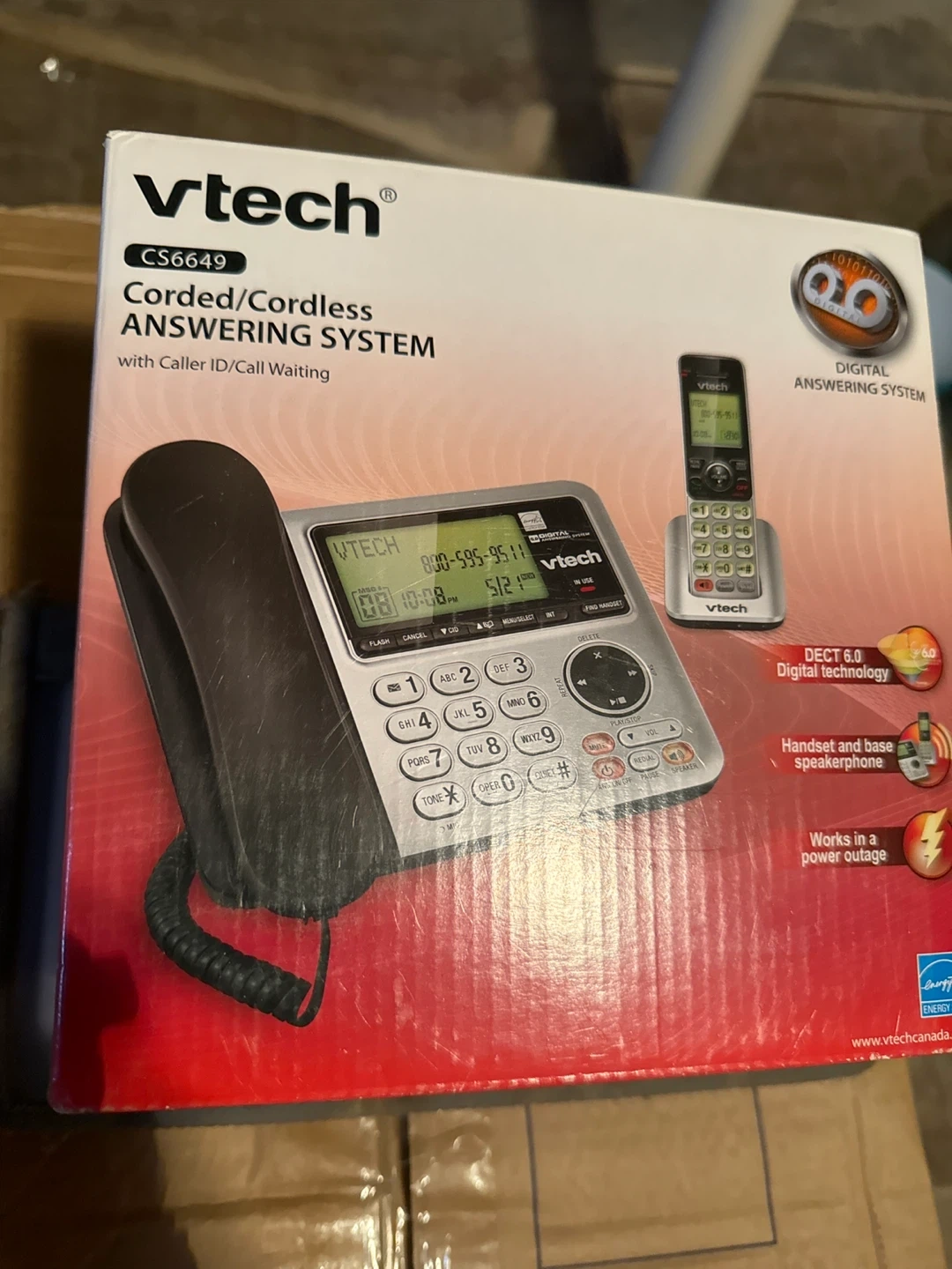 This is a VTech CS6649 corded/cordless answering system with Caller ID/Call Waiting. It features DECT 6.0 digital technology and a handset and base speakerphone. It also works in a power outage!