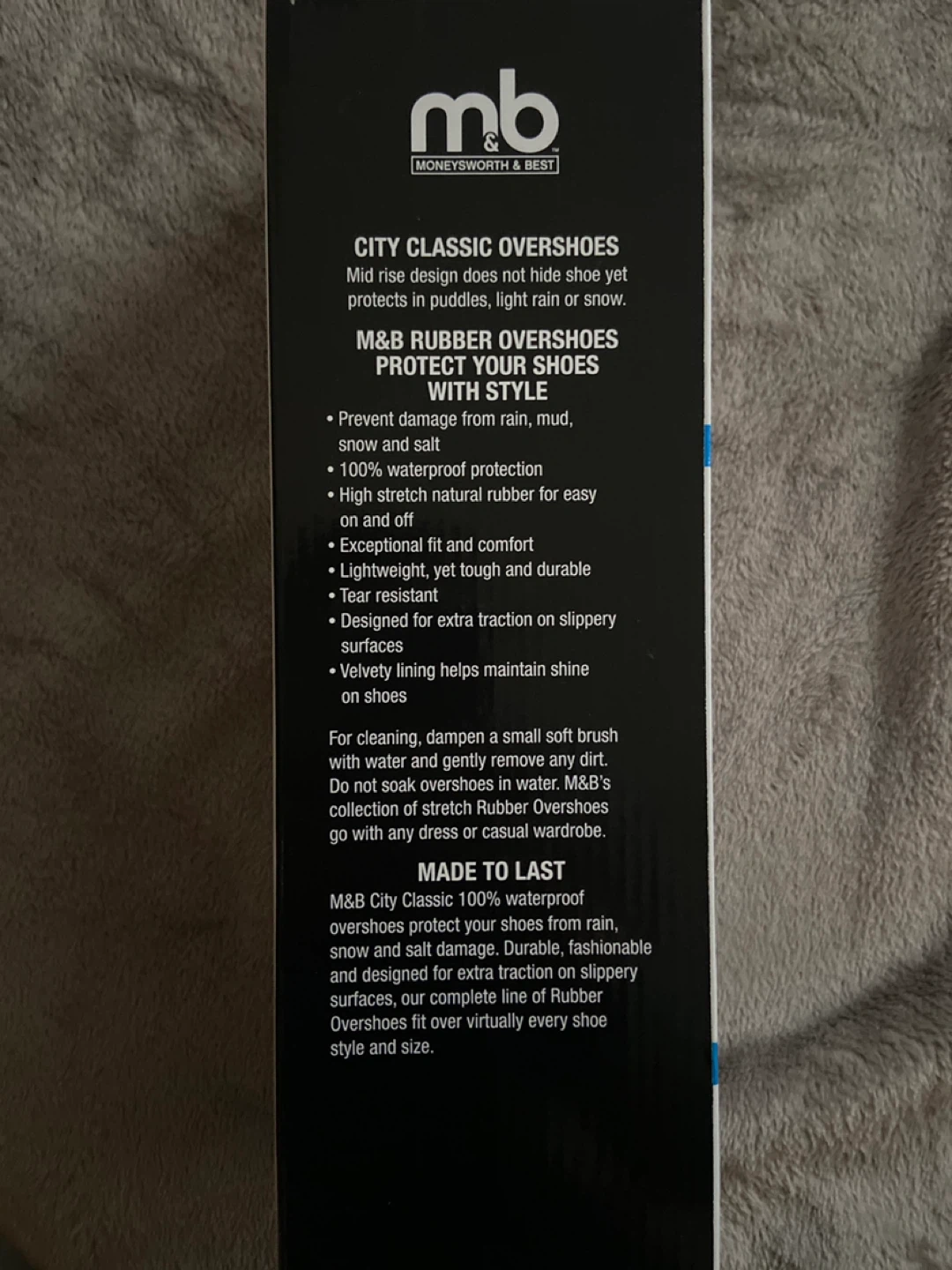 M&B City Classic waterproof rubber overshoes protect your shoes from rain, snow, and salt damage. They're made with high stretch rubber for an exceptional fit and feature a velvety lining to help maintain shoe shine. Designed for extra traction on slippery surfaces, they're suitable for everyday wear.