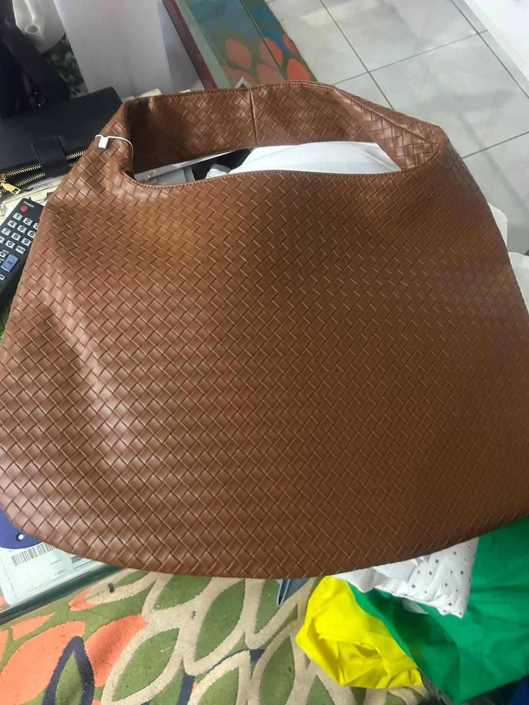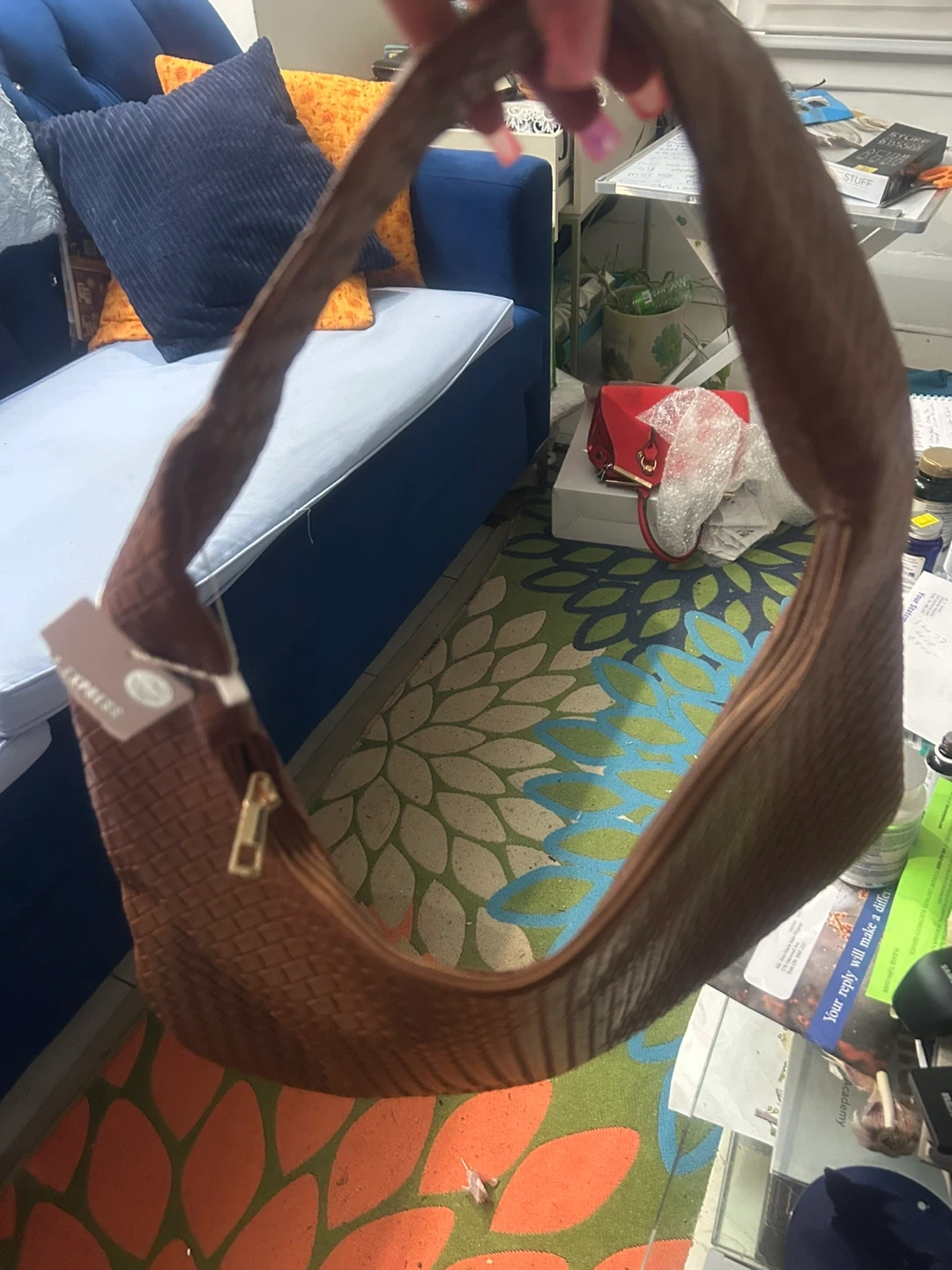 A stylish brown woven shoulder bag from Express! It's in great condition and ready to add a touch of texture to your outfit. The woven design gives it a unique and fashionable look. Perfect for carrying your essentials with ease and style