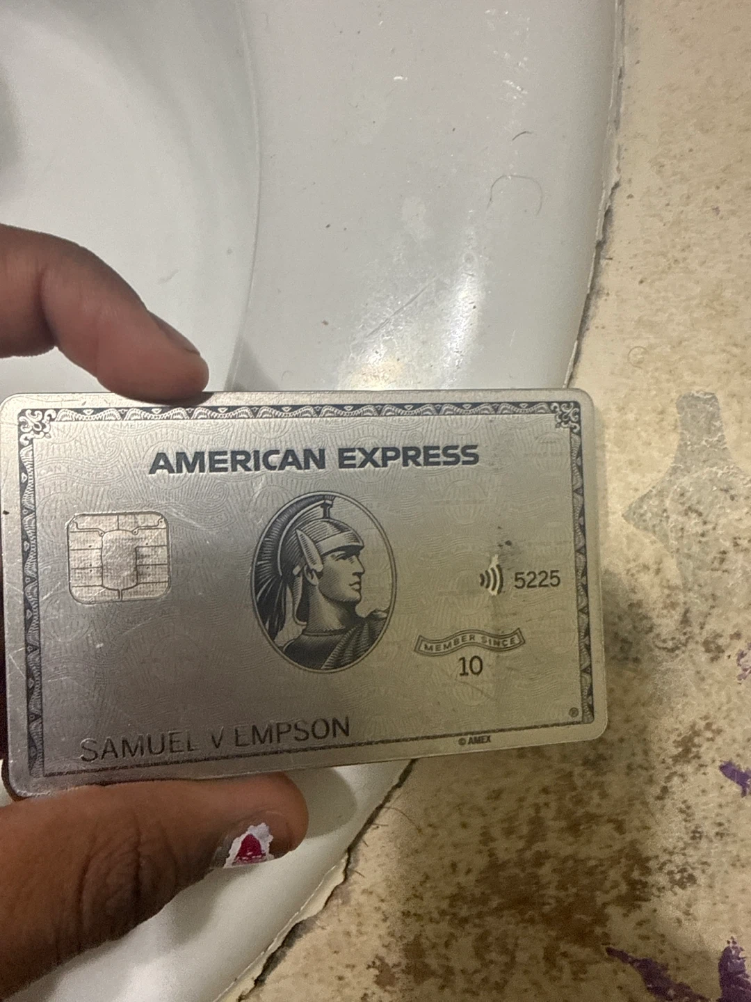 This is an American Express card. It has contactless payment enabled. The member since year is visible.