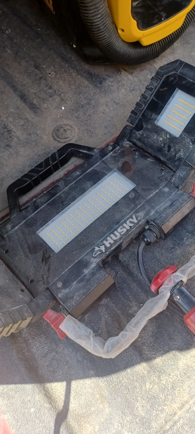 This is a Husky LED work light with multiple LED panels for bright illumination. It's built for durability and has a sturdy handle for portability. Ideal for workshops or job sites!