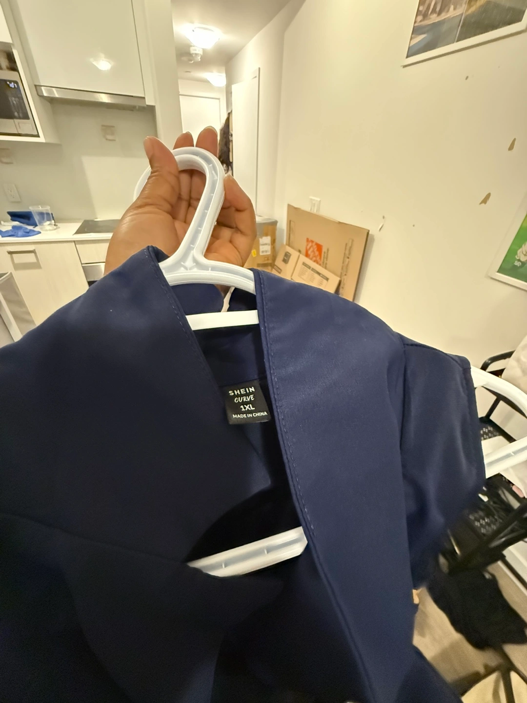 Giving out a navy blue dress from Shein in size 1XL. It's in great condition and ready for a new home!