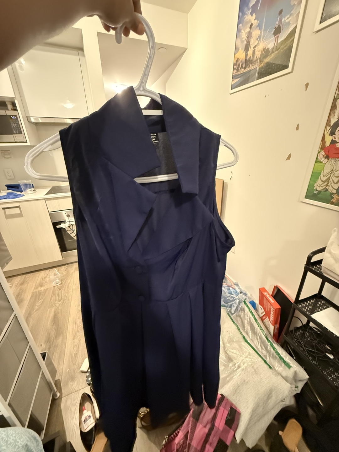 Giving out a navy blue dress from Shein in size 1XL. It's in great condition and ready for a new home!