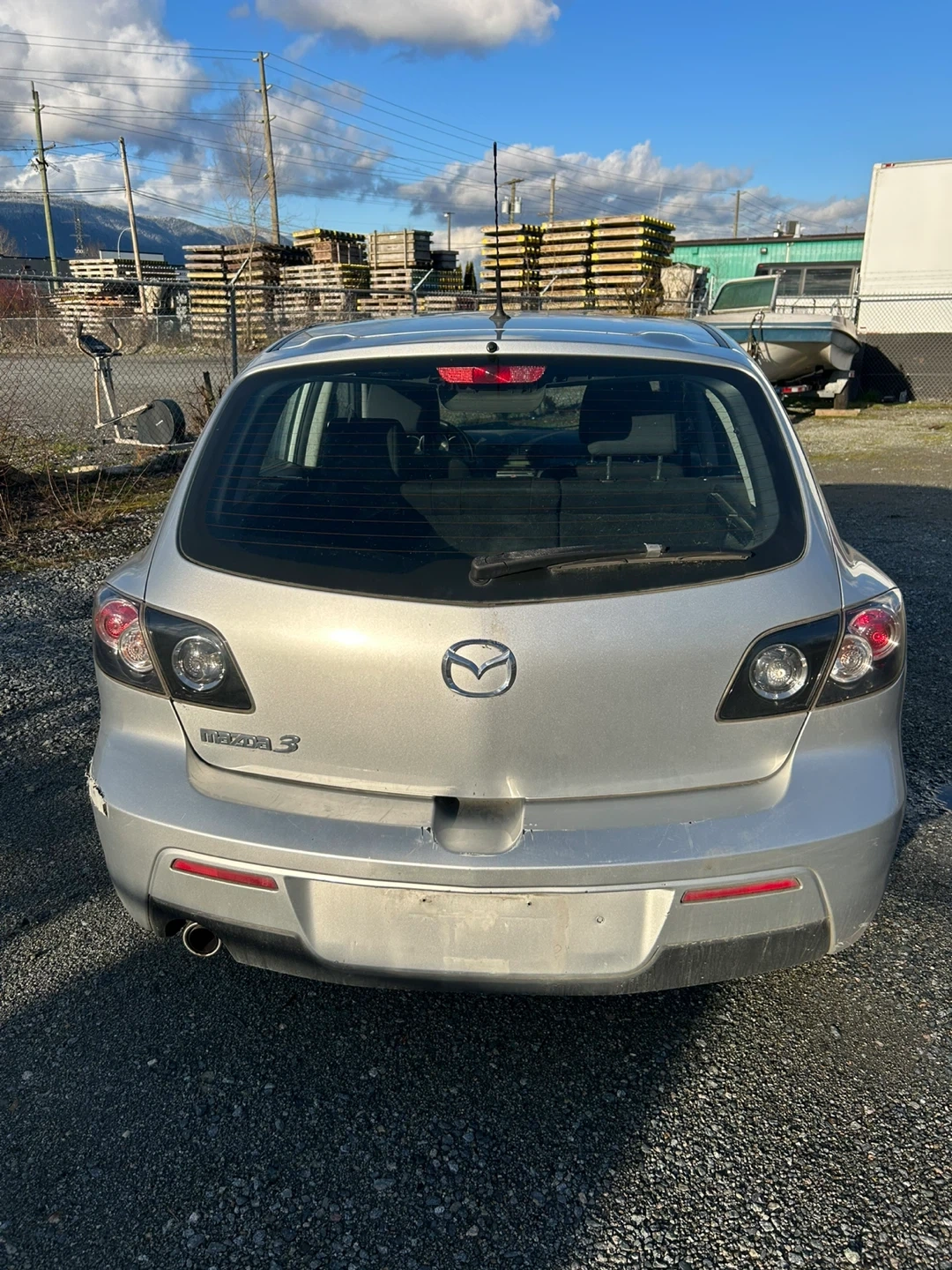 Silver Mazda 3 hatchback. Odometer reads 154,390 km. This car's been reliable for daily commutes. It's a practical choice for getting around town.