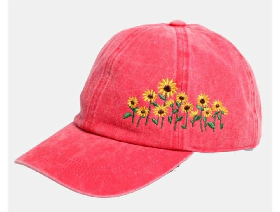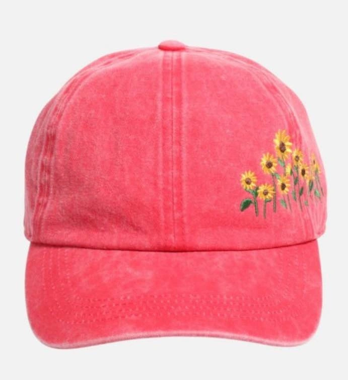 Coral baseball cap with cute sunflower embroidery on the side. Perfect for sunny days or just adding a pop of color to your outfit. New with tags. Check other new items.