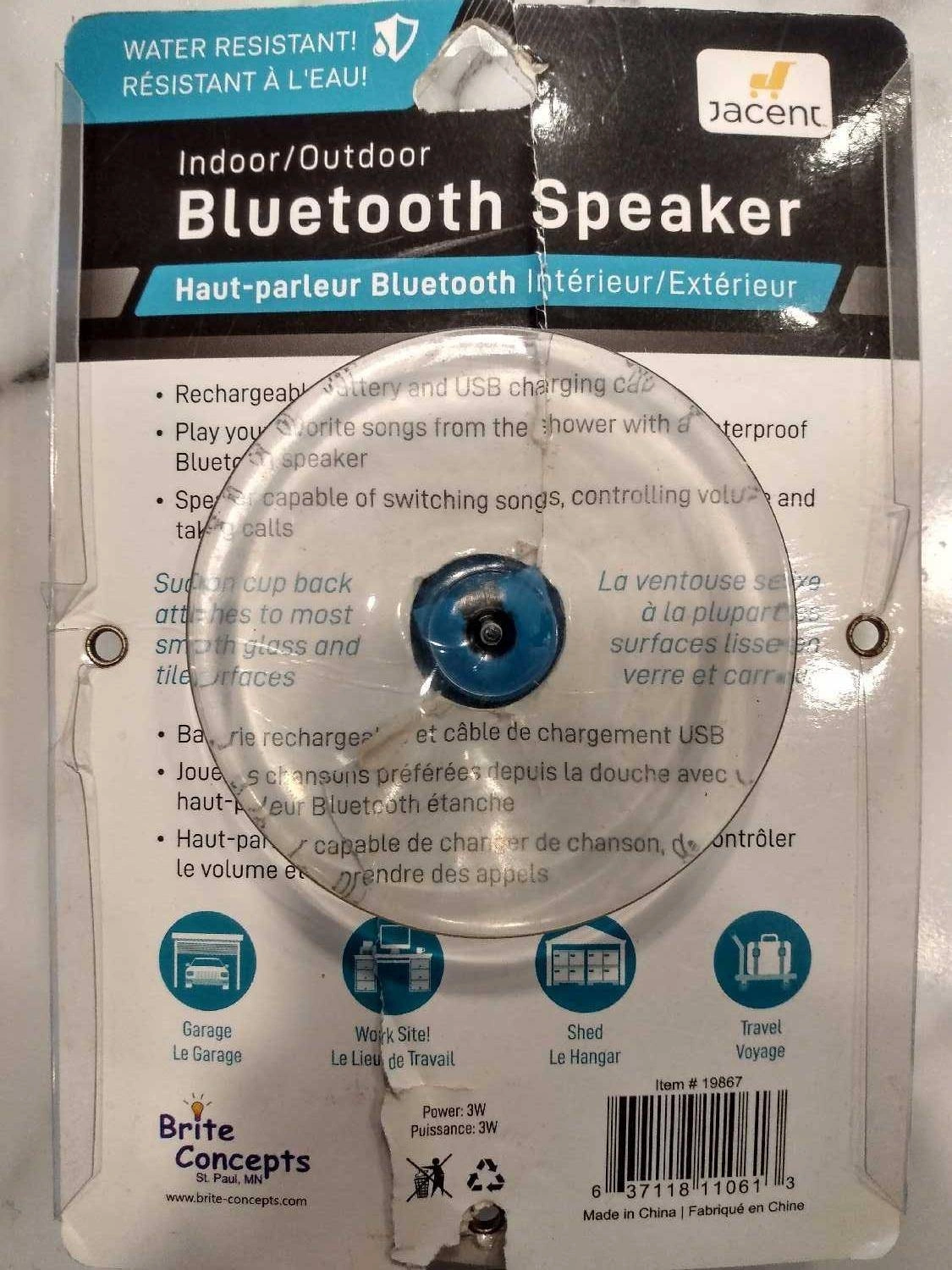 Selling a brand new Jacent indoor/outdoor Bluetooth speaker! It's water resistant, rechargeable. You can play your favourite songs from the shower with this waterproof speaker.