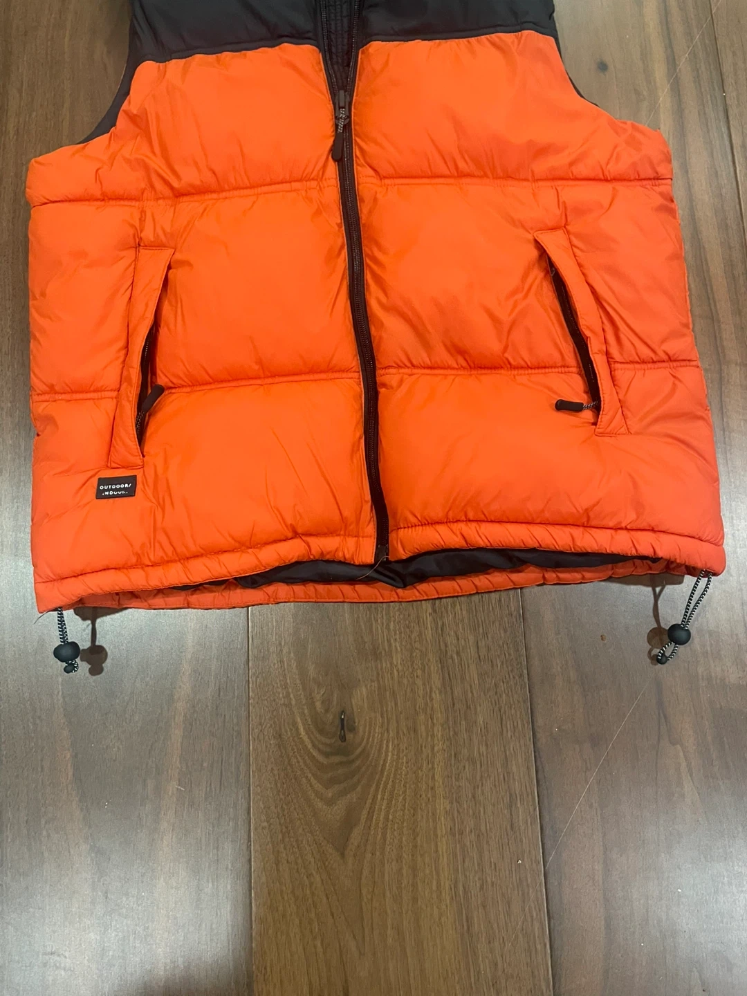 Selling my Zara black and orange vest. It was gifted to me but it isn’t my style. Wore only a handful of times and is in very good condition. All the zippers work and there is no major damage to it. It contains 2 outside zipper pockets and 1 inside zipper pocket.