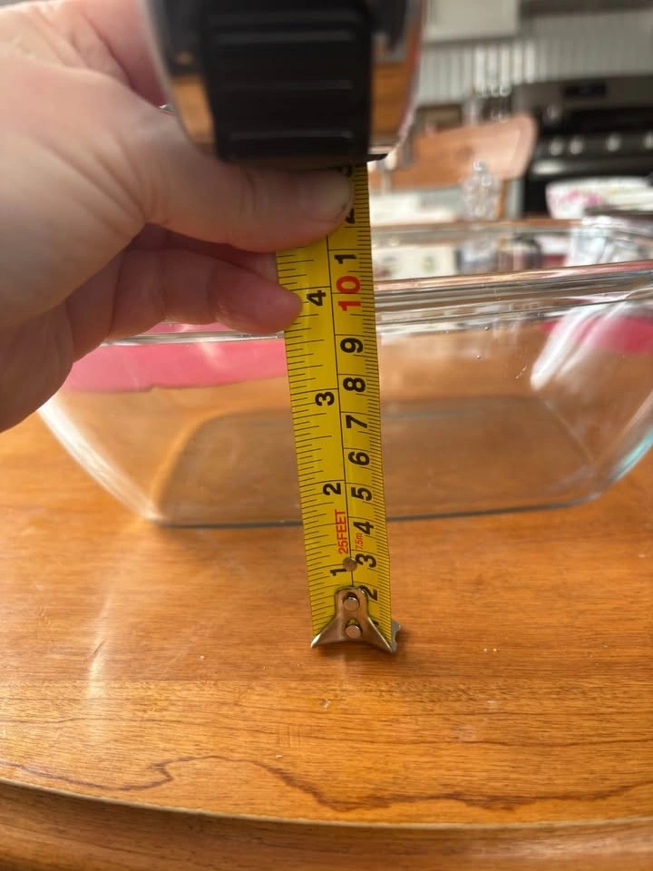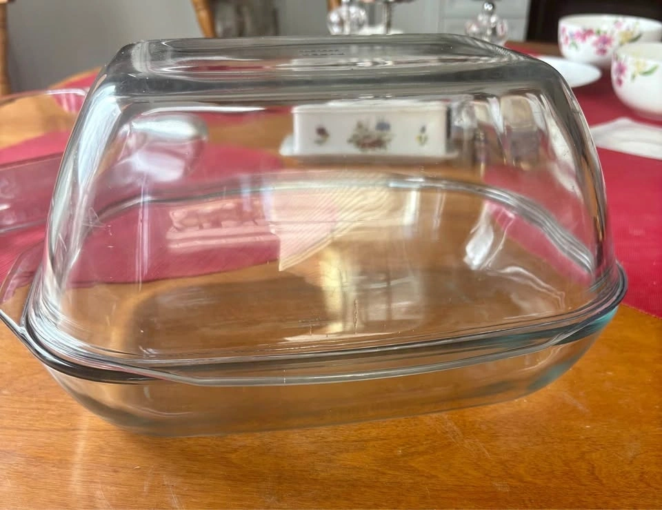This Pyrex glass baking dish is a highly versatile cooking vessel equipped with a lid. It is suitable for preparing casseroles, roasting various foods, and even roasting a whole chicken. The dimensions of the dish are approximately 12 inches in length and 8 inches in width. Pick up in Keswick.