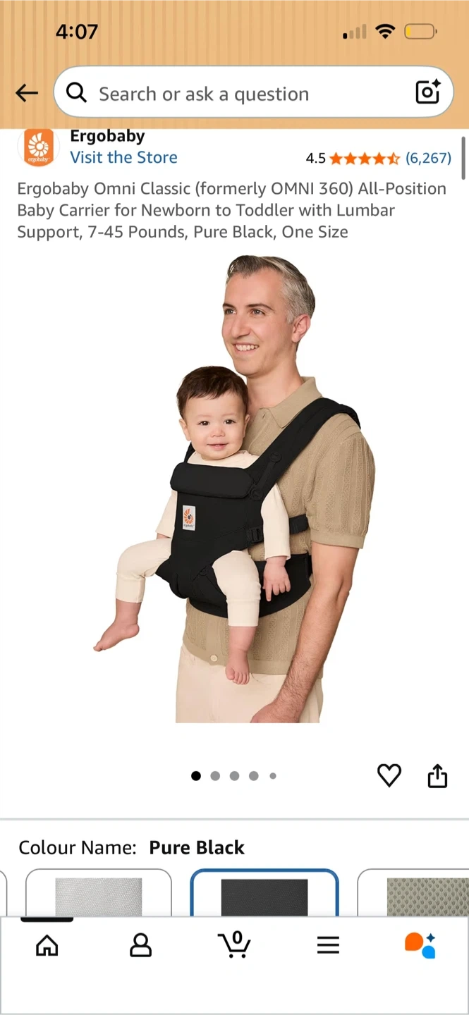 Ergobaby Omni Classic (formerly Omni 360) all-position baby carrier. For newborns to toddlers, 7-45 pounds. It's one size and features lumbar support. Great for keeping your little one close while on the go!