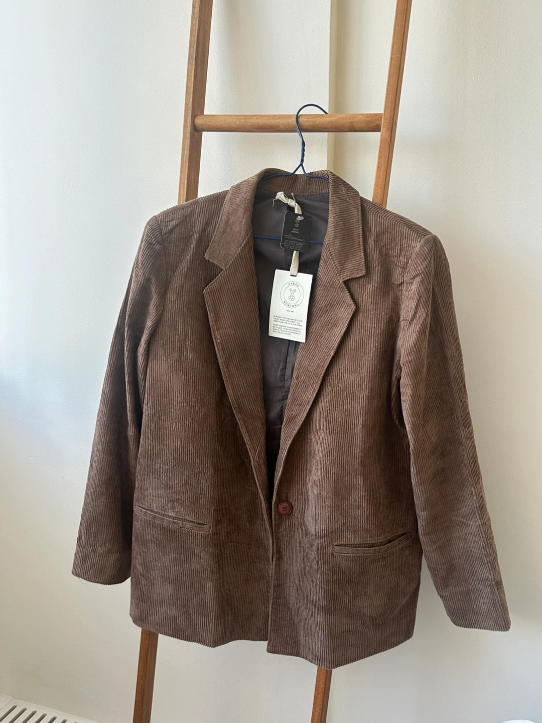 Urban Renewal corduroy blazer in a stylish tan colour! This blazer is perfect for adding a touch of vintage flair to any outfit. The corduroy material gives it a unique texture and look. It's in great condition and ready for a new home!