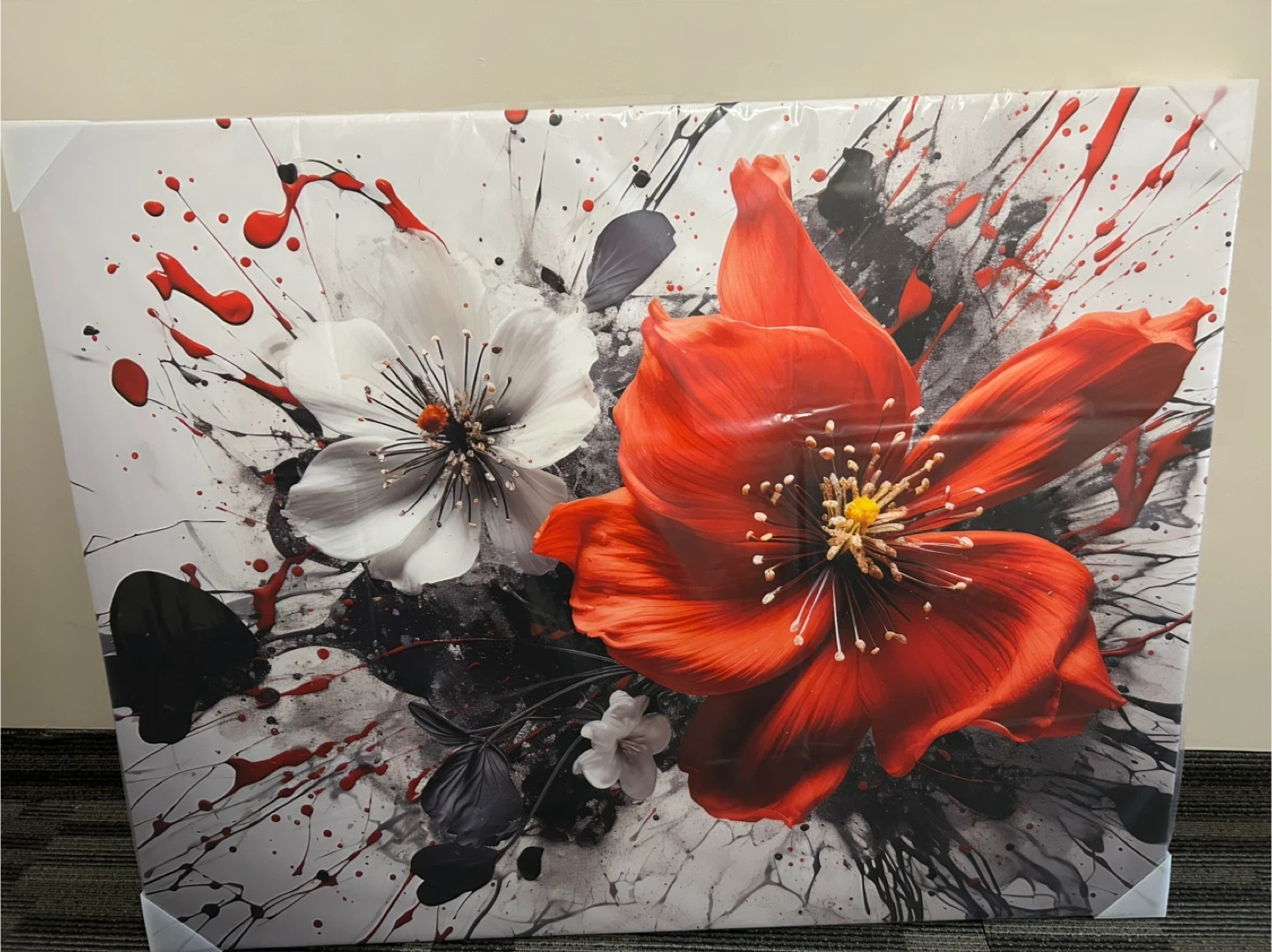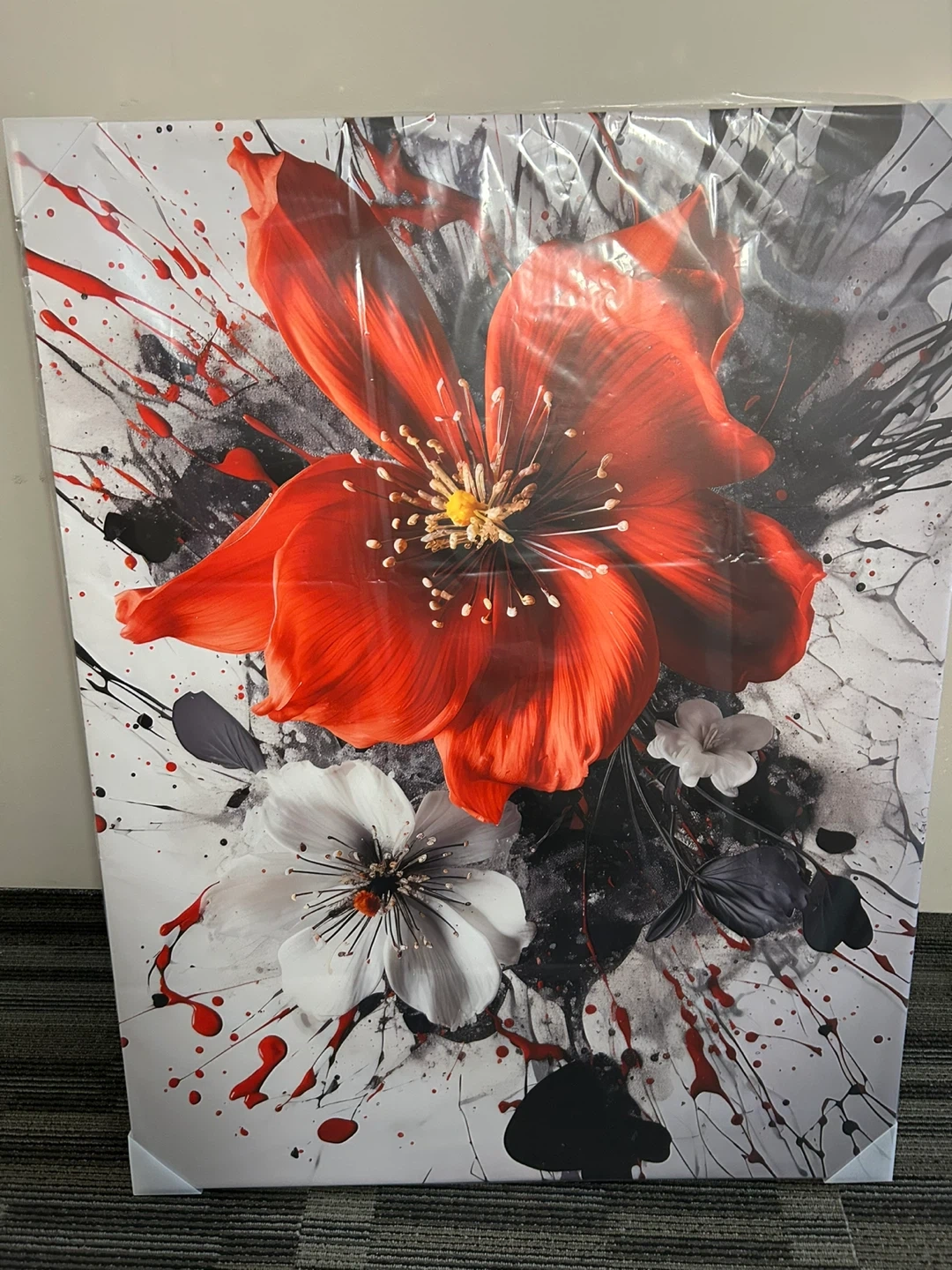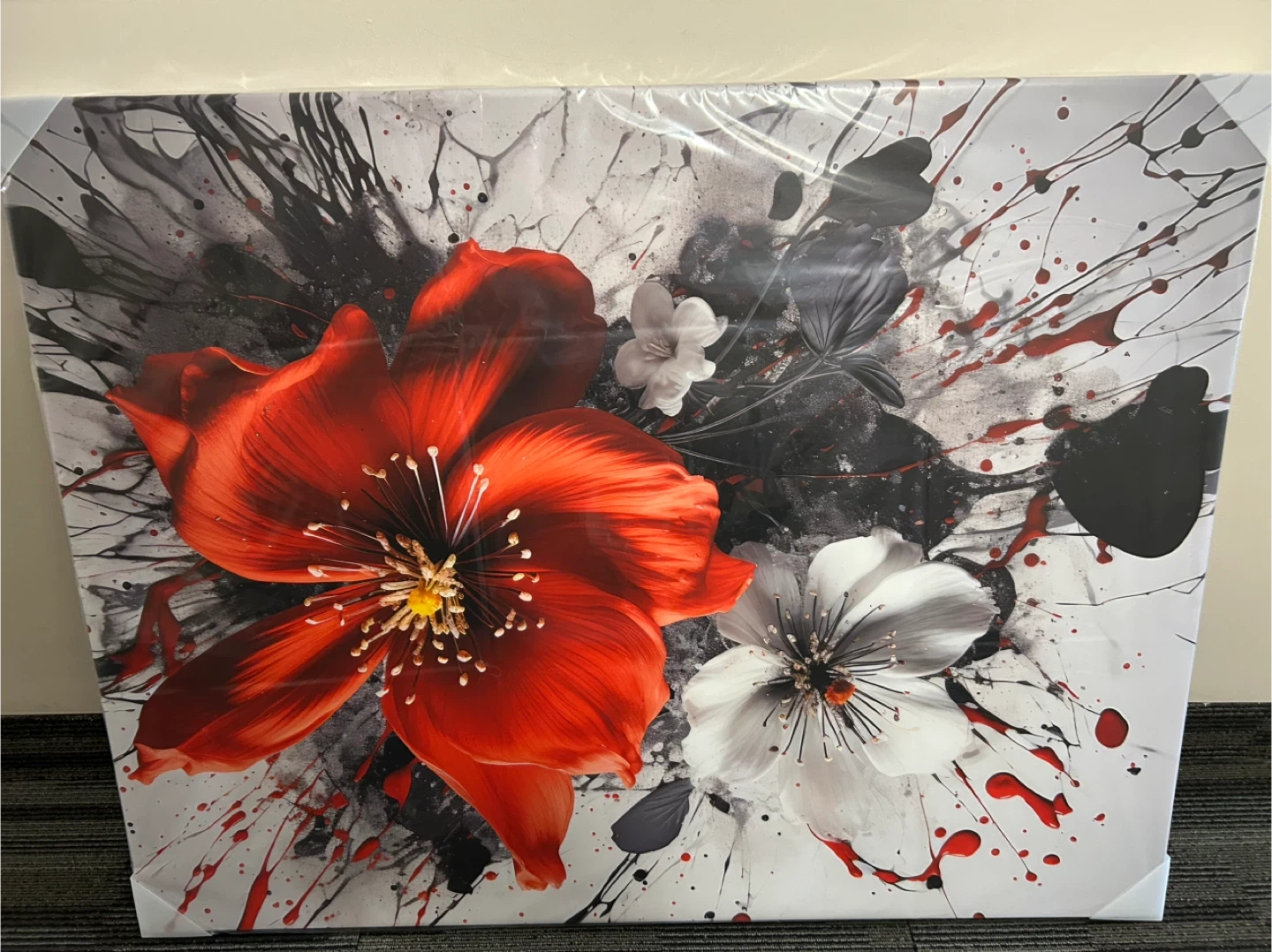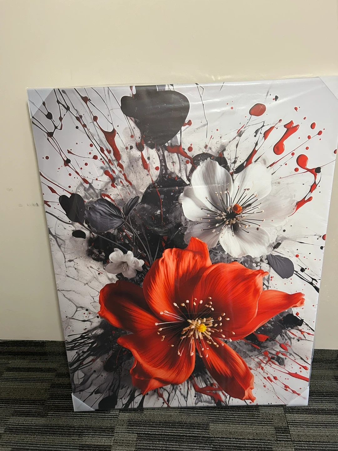 Whether it’s over your sofa, in the office, or heading up a hallway, this "ink-splatter" style floral brings an immediate modern edge to your space. 🔴⚪️⚫️