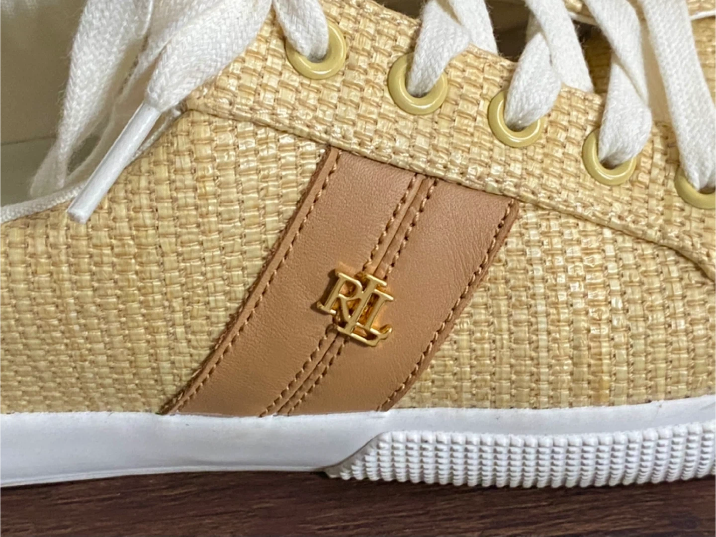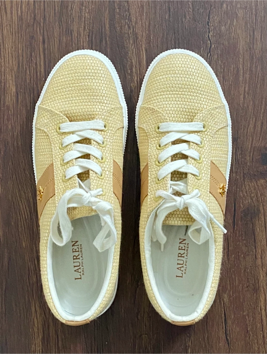 These Ralph Lauren sneakers feature a beige woven design with leather accents. They're in great condition and ready for a new home! The classic design makes them versatile for everyday wear.