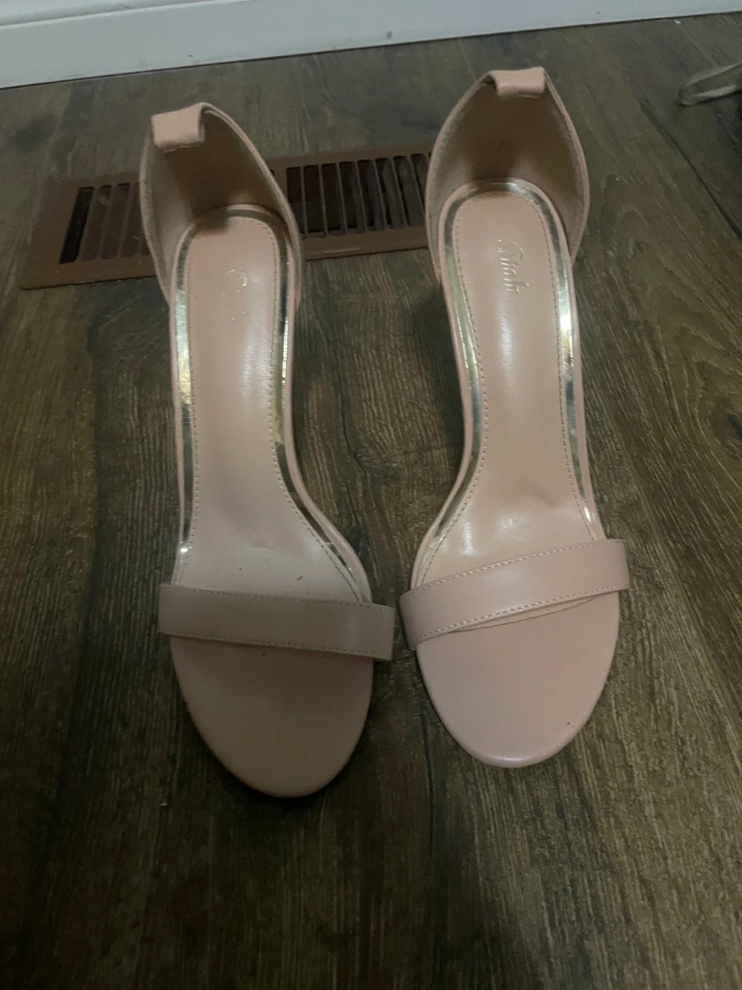 Selling a pair of heels in a nude colour. They are in great condition and are a size EUR 38 Perfect for a night out or special occasion!
